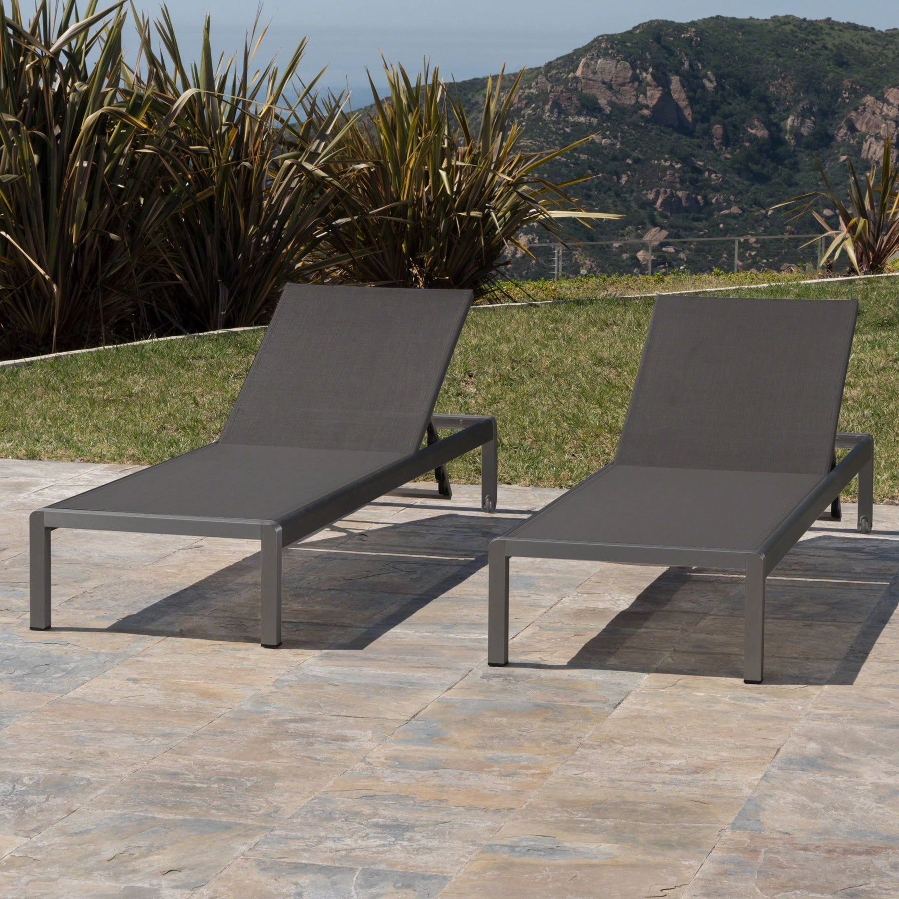 Outdoor Chaise Lounge Chair (Set of 2), Aluminum Adjustable Outside Chair For Pool Patio Beach Yard, All Weather Use UV Resistant 400Lbs Weight Capacity - Gray