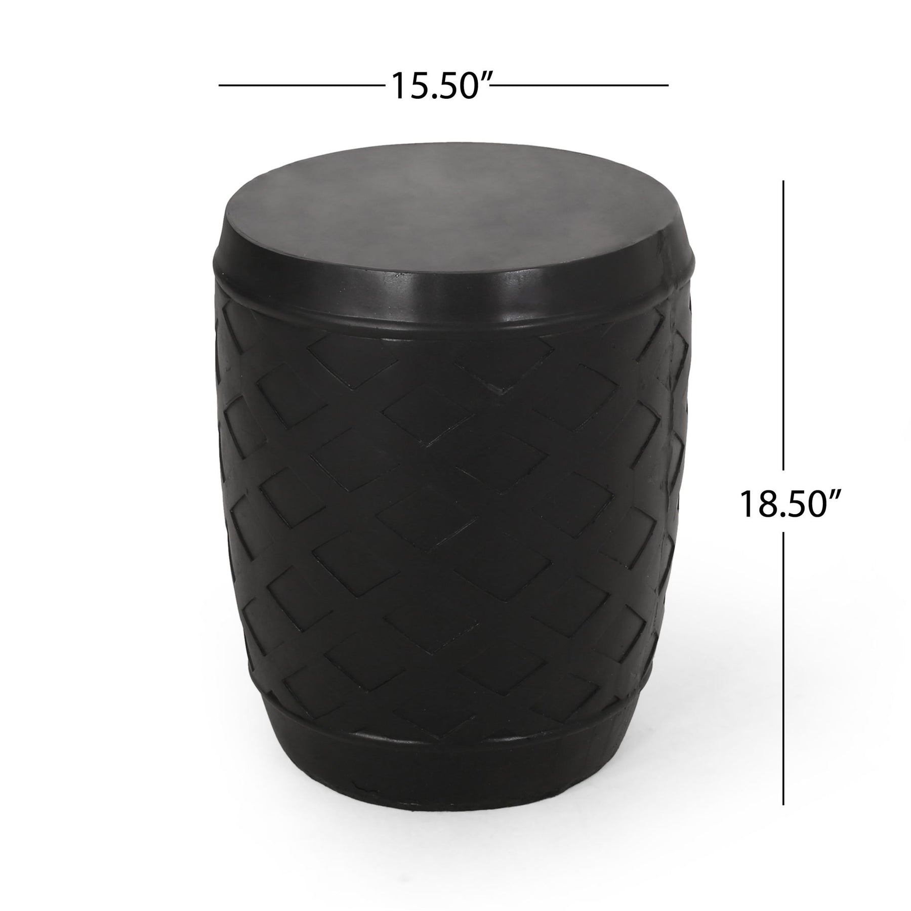 Outdoor Side Table With Lattice Design And Round Top - Black