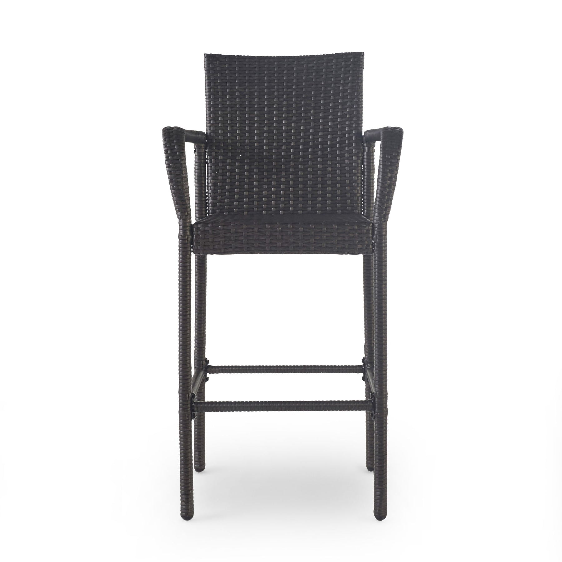 Outdoor Wicker Barstool With Faux Rattan And Iron Frame - Mix Mocha