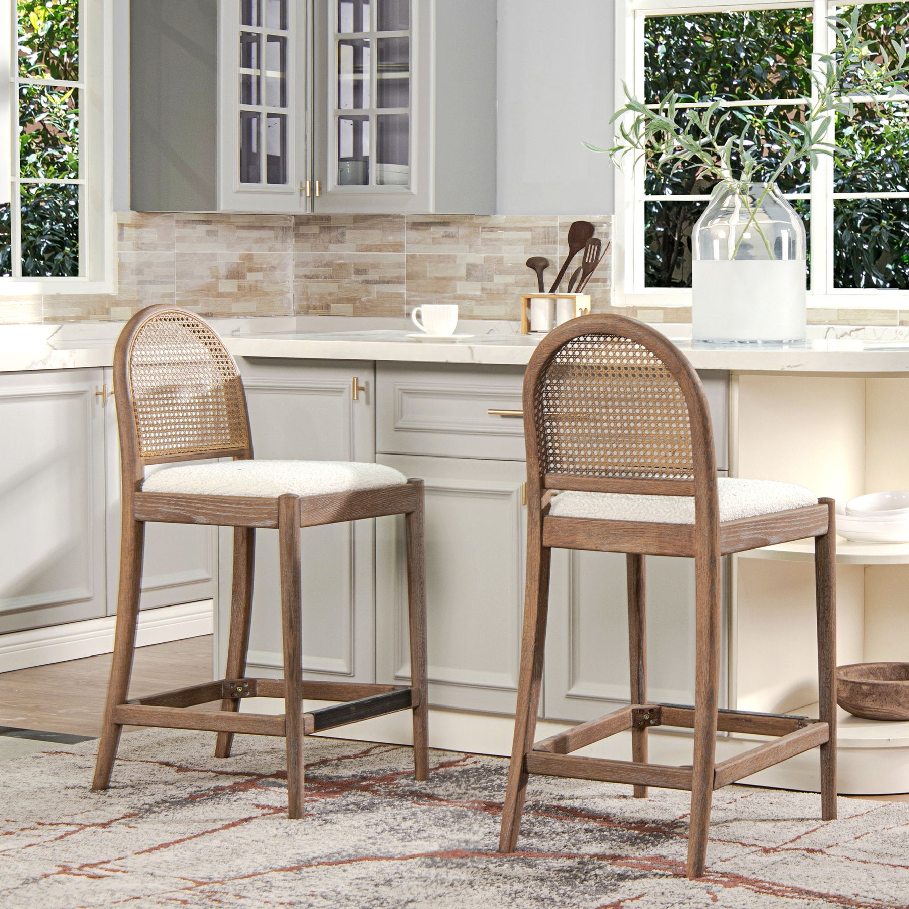 Panama - Curved Back Cane Counter Stool (Set of 2) - Ivory White