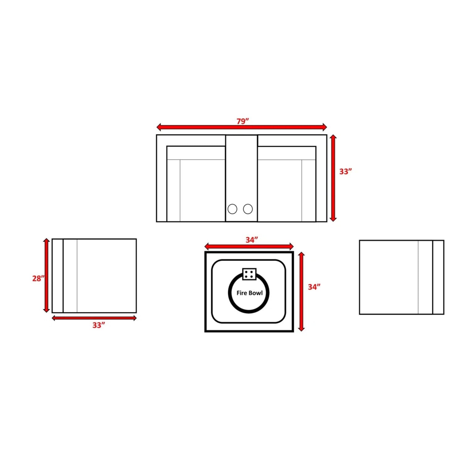 • Complete 6-Piece Set: Includes 2 armless chairs, 1 left-facing chair, 1 right-facing chair, 1 center armrest with cup holders, and 1 fire pit