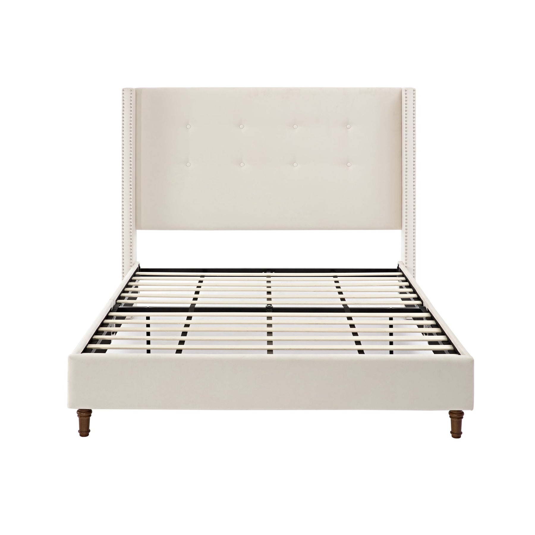 Peyton - Queen Bed Upholstered With High Headboard, Traditional Hand Buttoned Tufting - Ivory Velvet