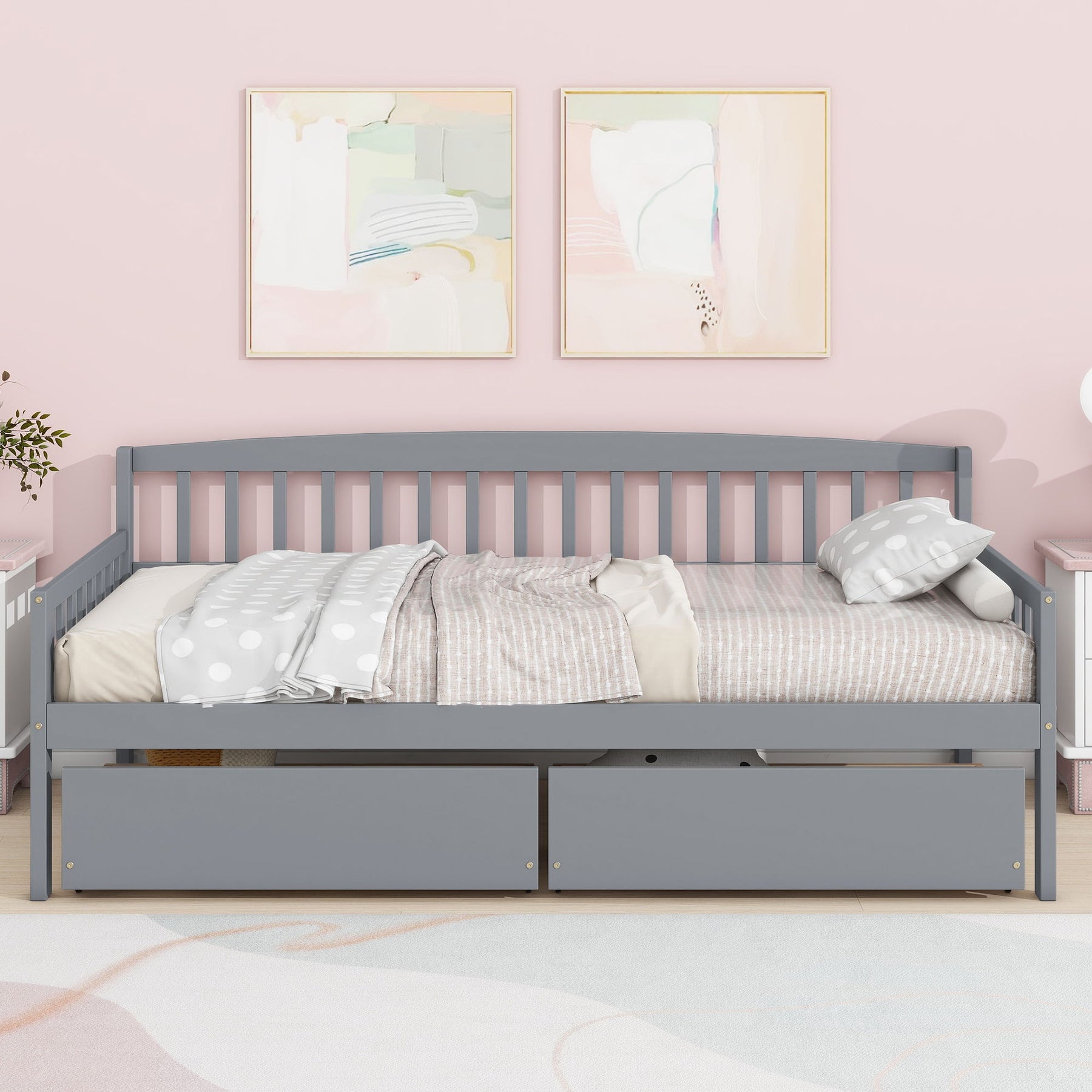 Twin Size Pine Wood Daybed With Two Storage Drawers, Sofa Bed With Bed Platform Of 10 Support Slats - Gray