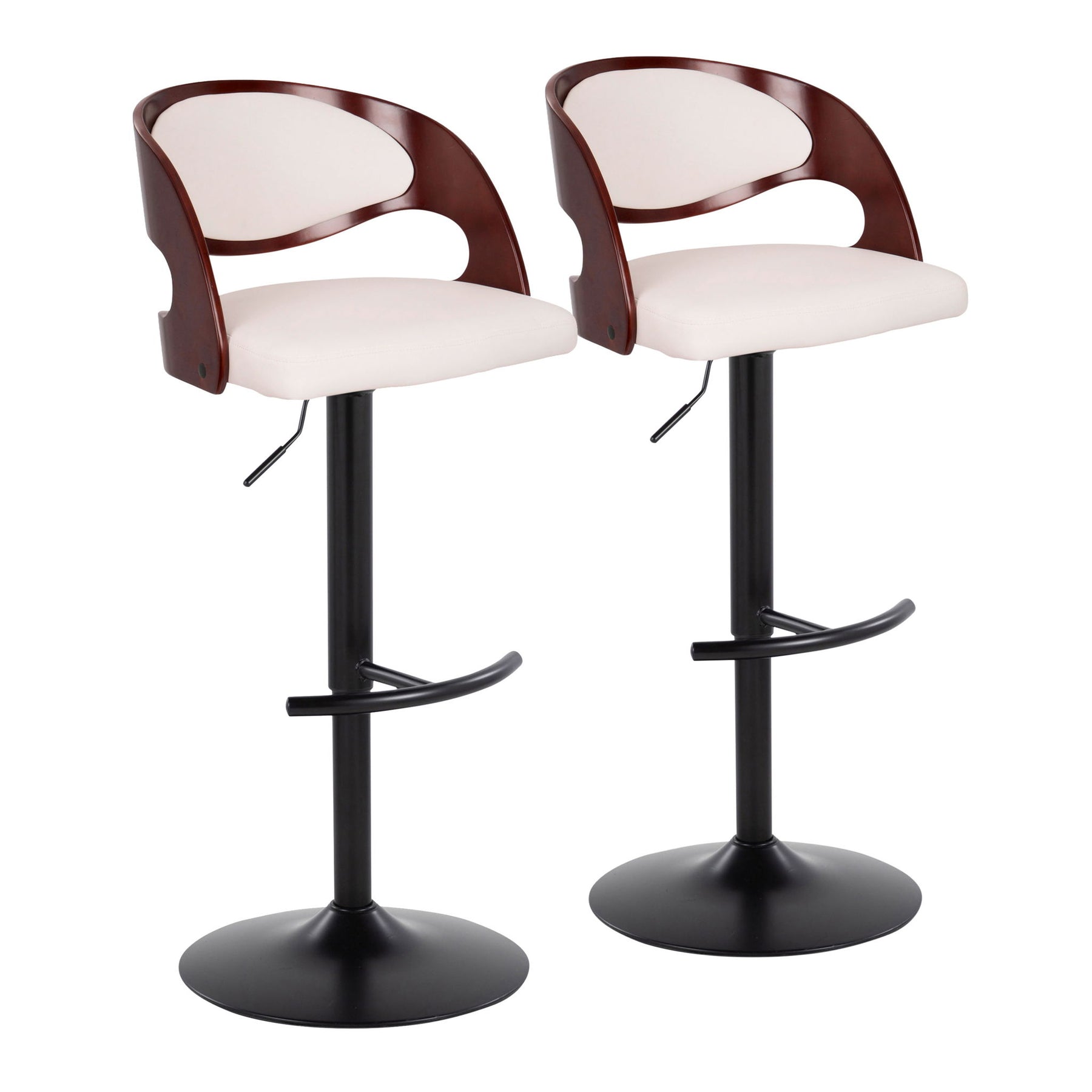 Pino - Mid-Century Modern Adjustable Barstool With Swivel With Rounded T Footrest (Set of 2) - Black / Cherry / White