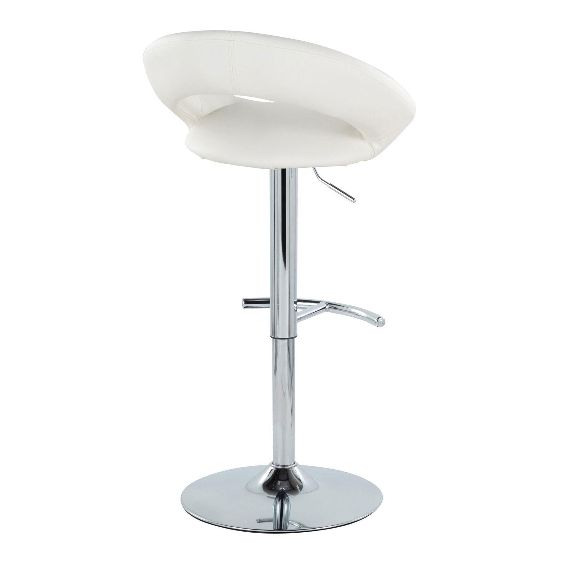 Posh - Contemporary Adjustable Barstool With Swivel With Rounded T Footrest (Set of 2) - Chrome / White