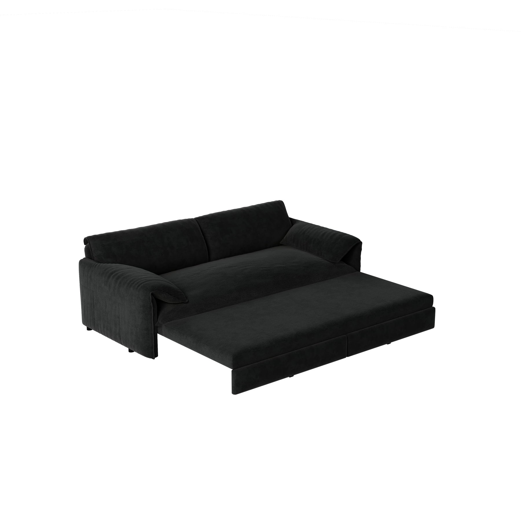 Queen Pull Out Sofa Bed, 3 In 1 Convertible Sleeper Sofa With Side Storage Multifunctional Velvet Loveseat Bed For Living Room - Black
