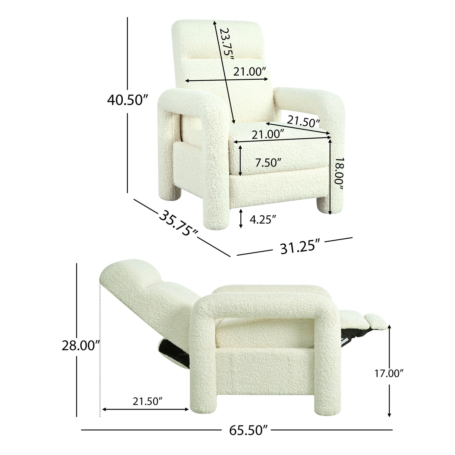 Push Back Recliner Armchair Upholstered Single Sofa With Adjustable Backrest For Living Room - Beige