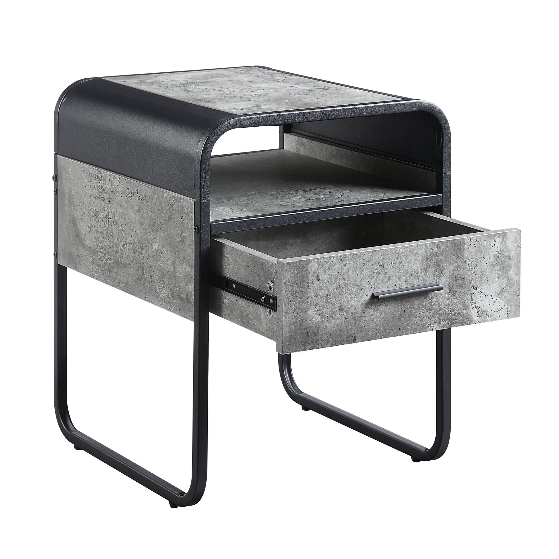 • Modern Design: This end table features a sleek Concrete Gray and Black finish, making it an ideal choice for contemporary interiors, blending functionality with style.