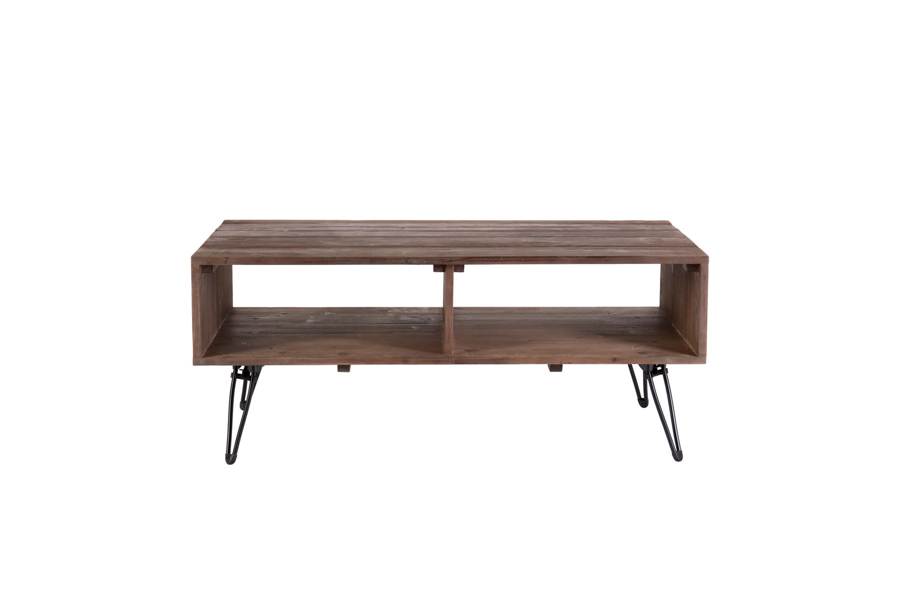 Reclaimed Wood Cocktail Table With Open Storage For Living Room, Metal Legs, Foldable - Black / Natural