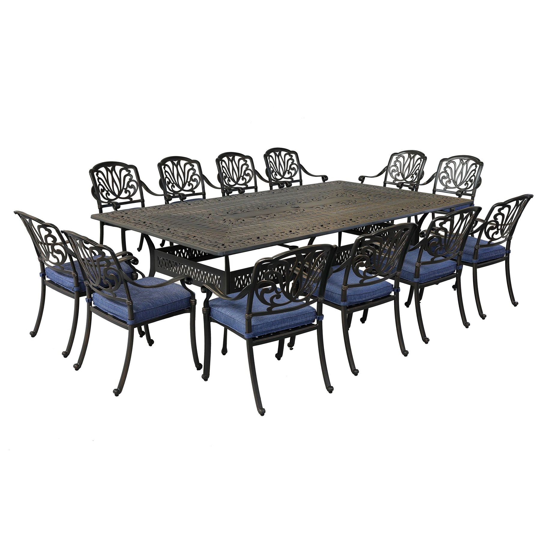 Rectangular 12 Person 108.07" Long Dining Set With Cushions - Gray / Navy