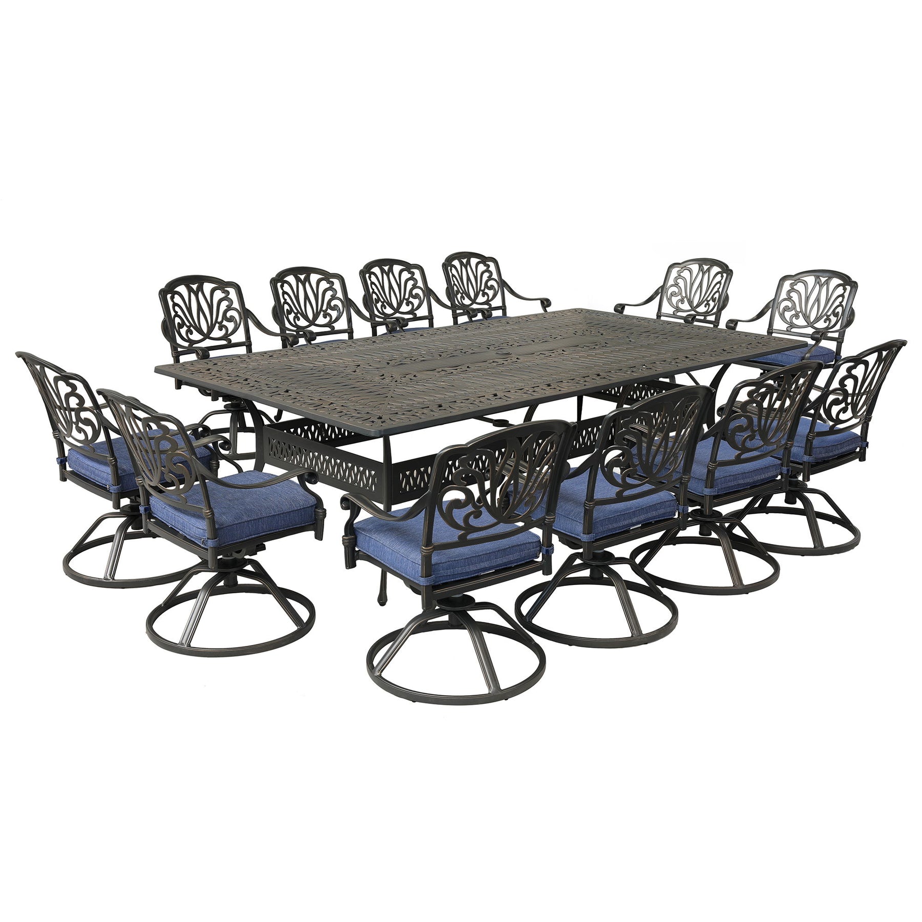 Rectangular 12 Person 108.07" Long Dining Set With Cushions With Swivel And Rocking Chairs - Gray / Navy