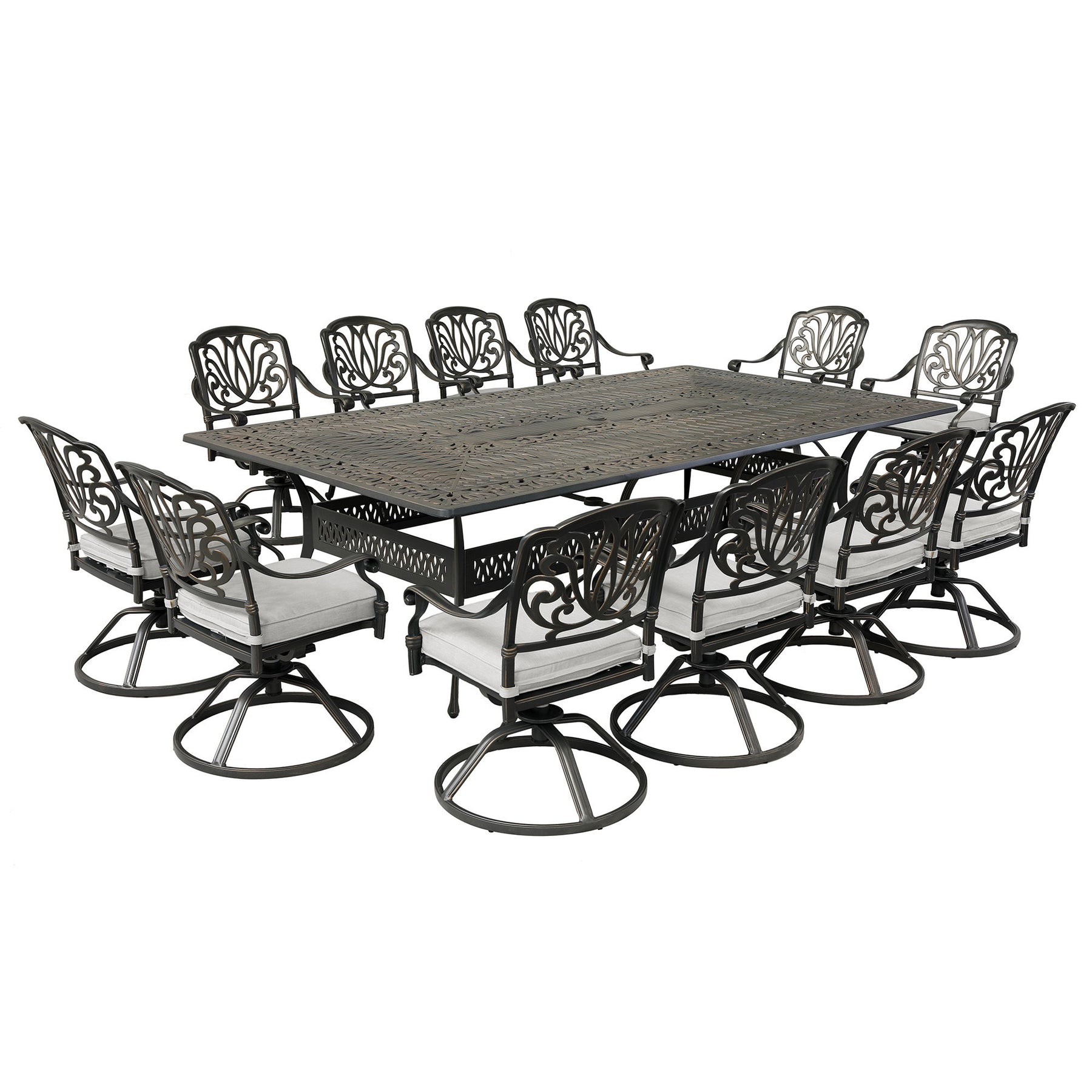 Rectangular 12 Person 108" Long Aluminum Dining Set With Cushions - Gray / Ivory