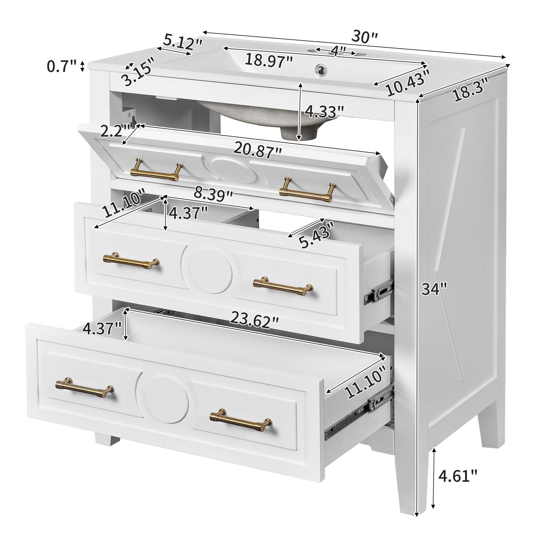 - Three Drawers: Ample concealed storage with soft-close hinges for quiet, reliable operation