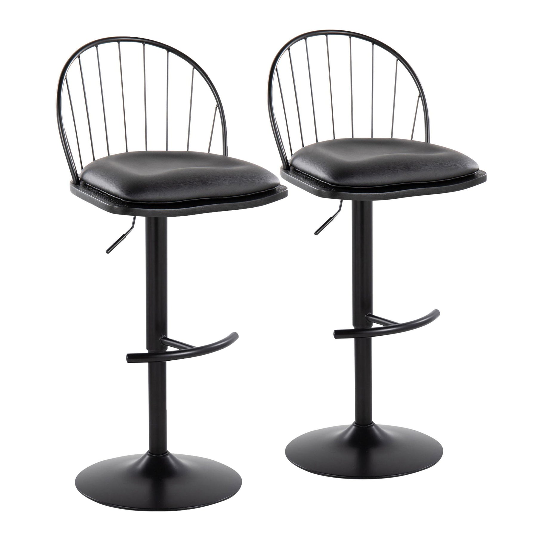 Riley - Farmhouse Adjustable Height Barstool With Swivel With Rounded T Footrest (Set of 2) - Black