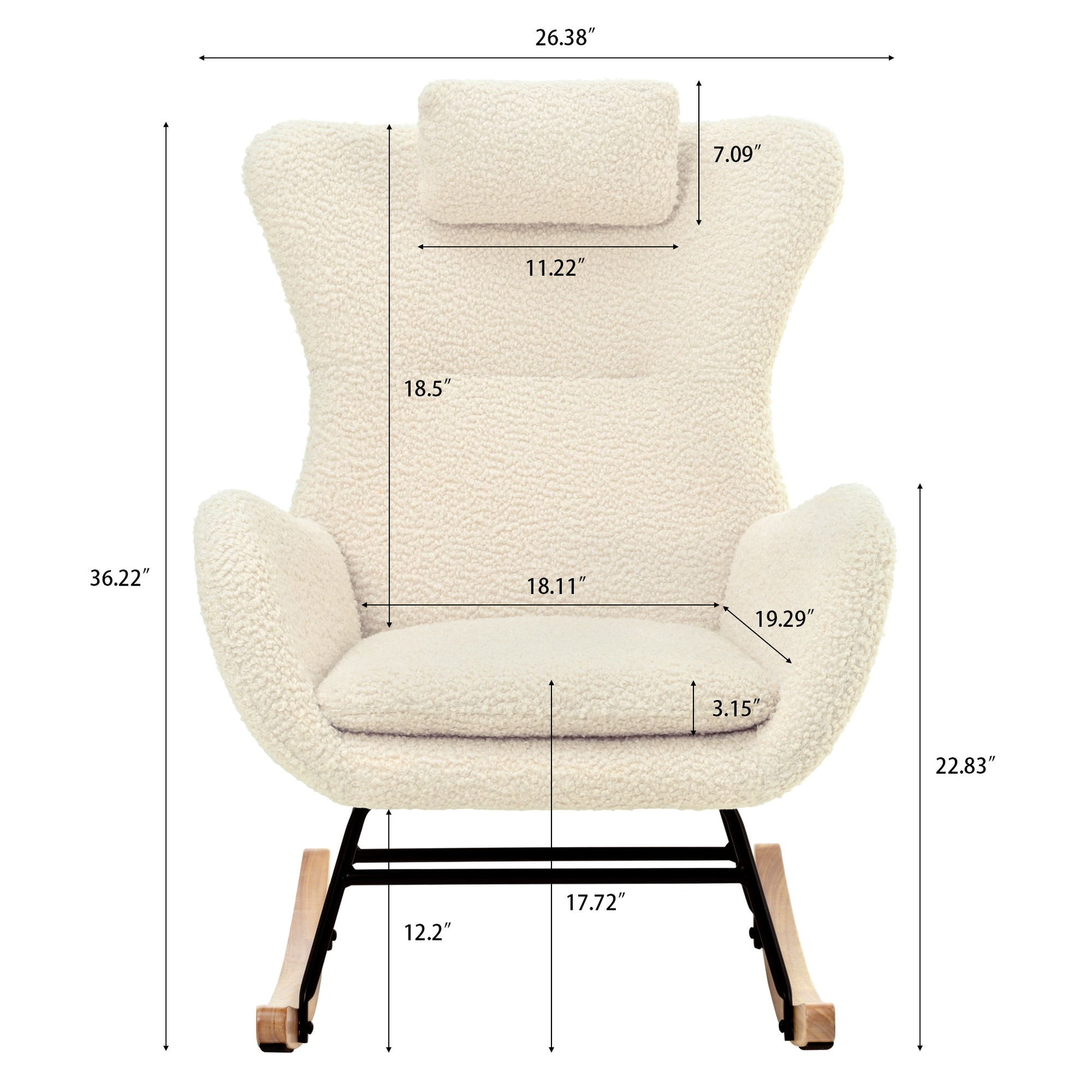 Rocking Chair Nursery, Teddy Upholstered Rocker Glider Chair With High Backrest, Adjustable Headrest & Pocket, Comfy Glider Chair For Nursery, Bedroom, Living Room, Offices, Rubber Wood - Beige
