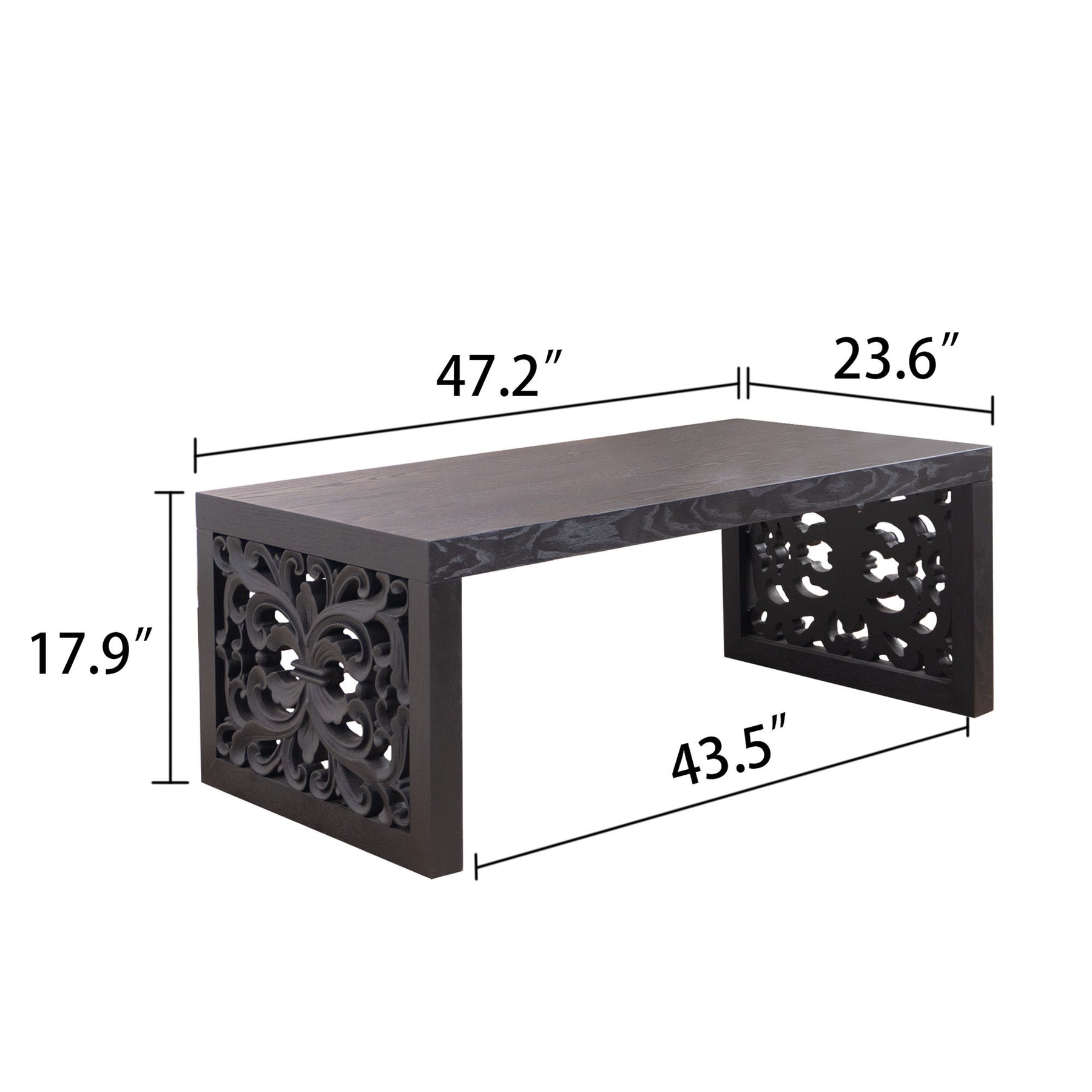 Solid Carved Wood Coffee Table, Handcrafted Look With Ornate Side Panels - Black