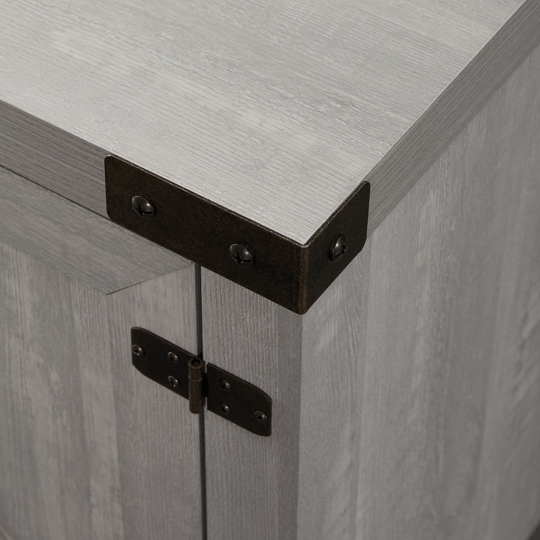 - 2 barn doors with exposed metal hinges