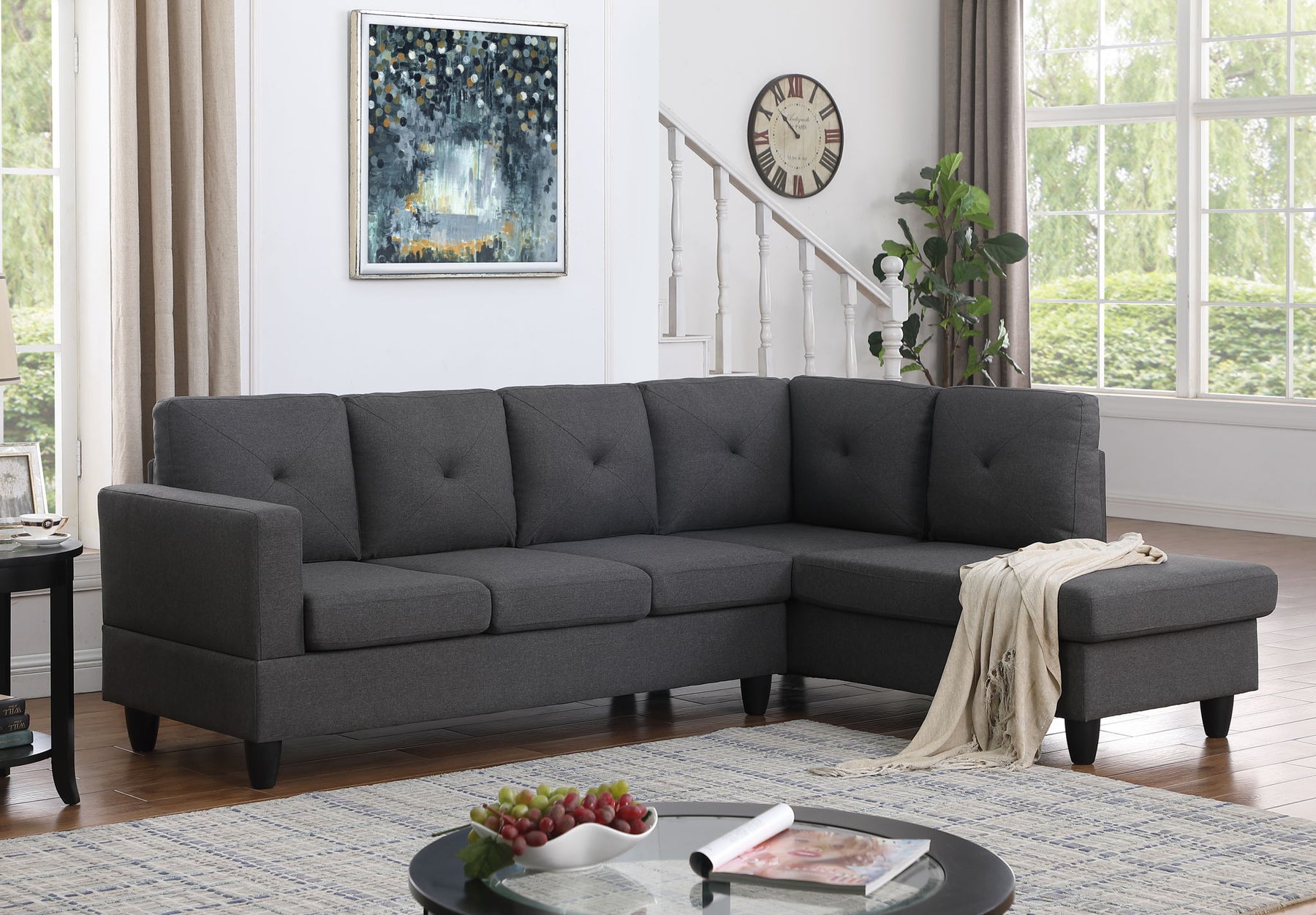 Santiago - Linen Sectional Sofa With Right Facing Chaise - Dark Gray