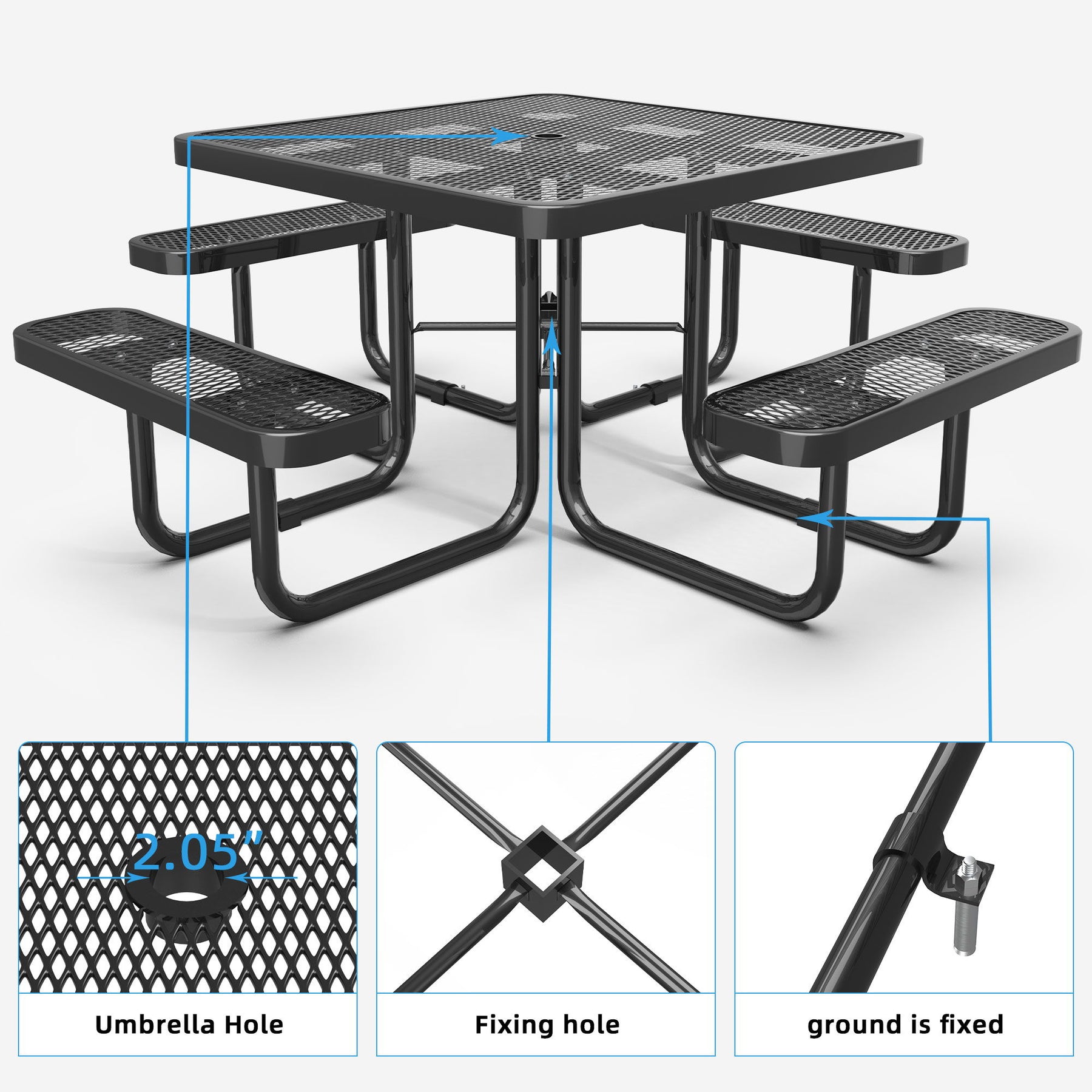 Square Outdoor Picnic Table With Umbrella Pole - Black