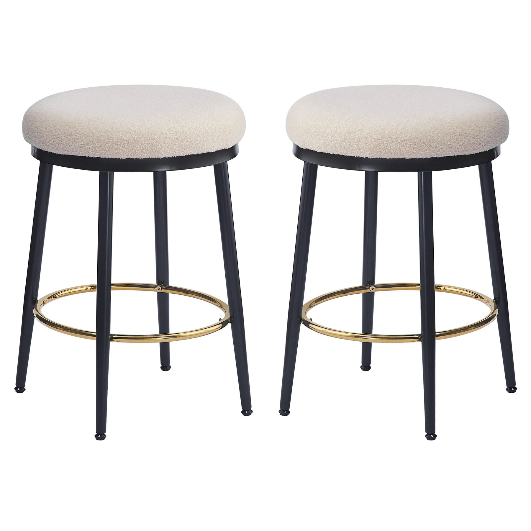 Modern Counter Stools (Set of 2) Counter Stools With Iron Frame, Sponge Cushion, Footrest, Suitable For Kitchen - White