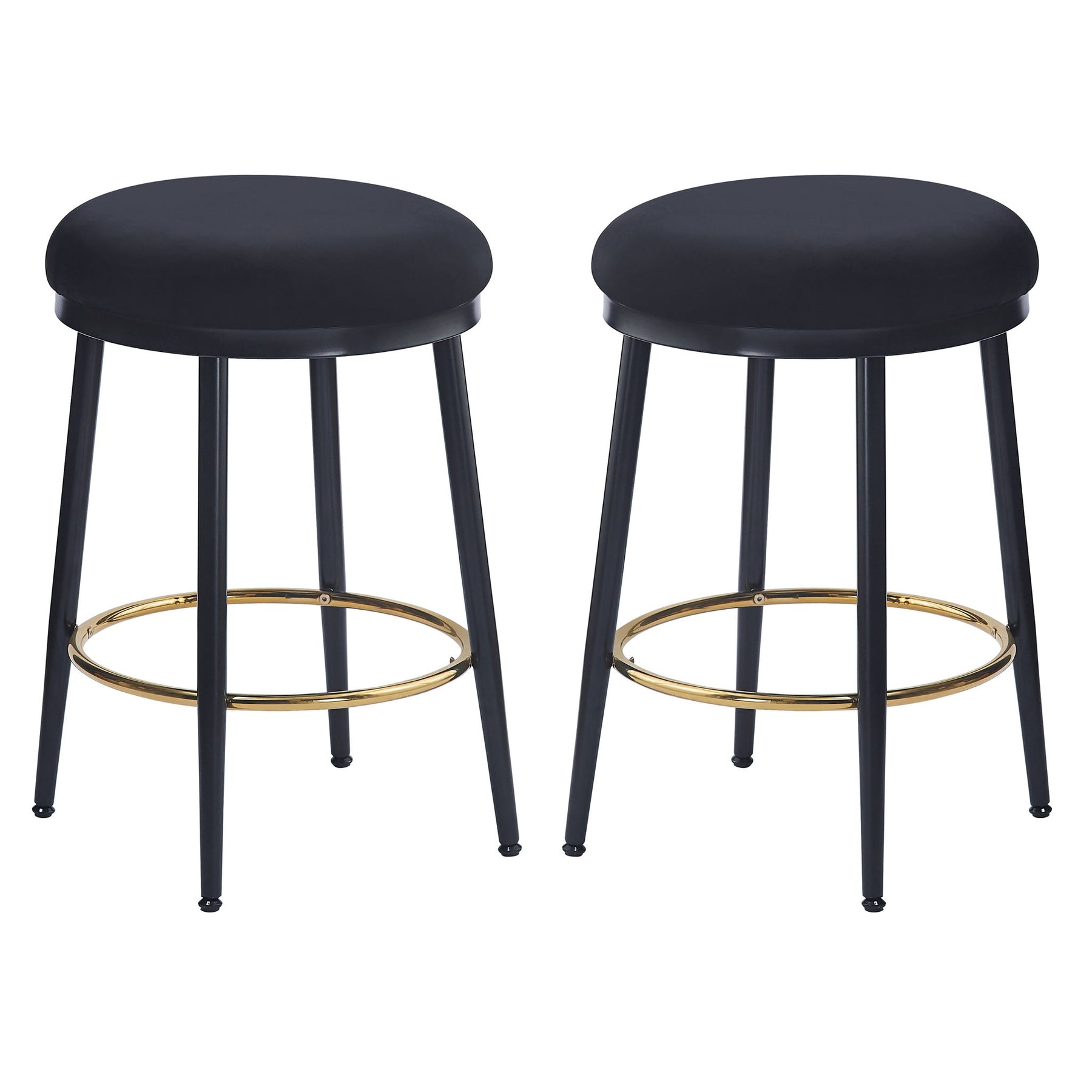 Modern Counter Stools (Set of 2), Counter Stools, Sponge Cushion, Footrest, Suitable For Kitchen / Bedroom / Dining Room - Black