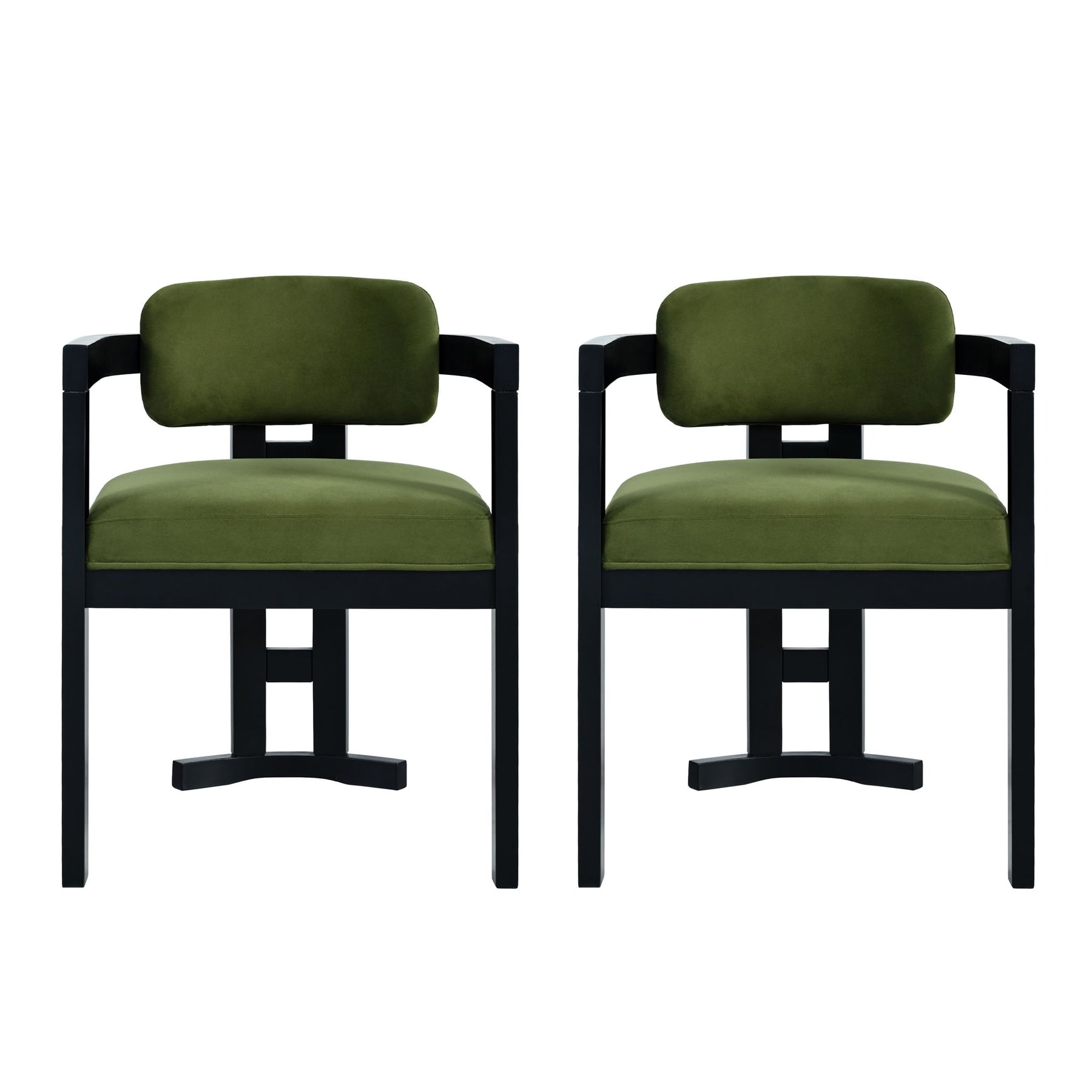 Elegant Upholstered Wood Dining Chair Set With Velvet (Set of 2) - Green / Black