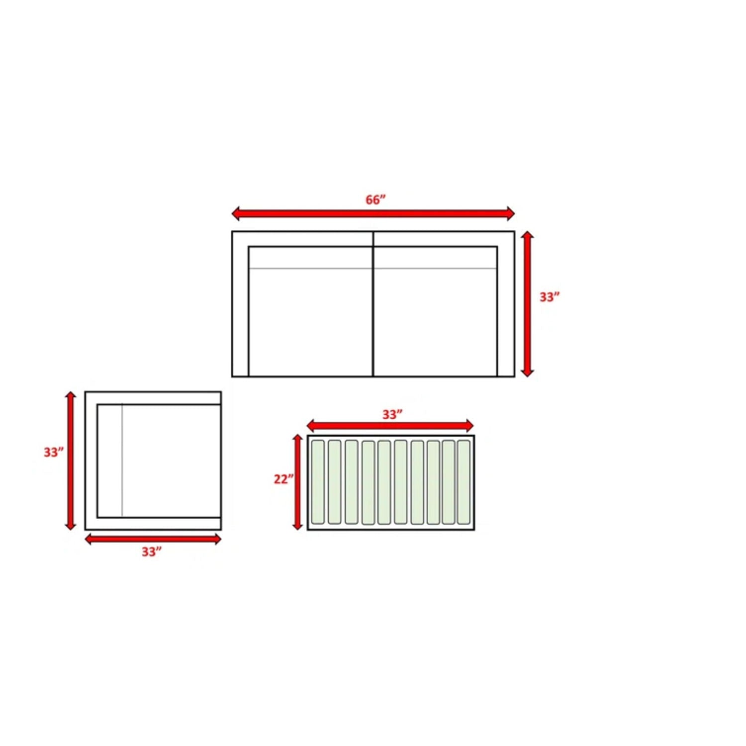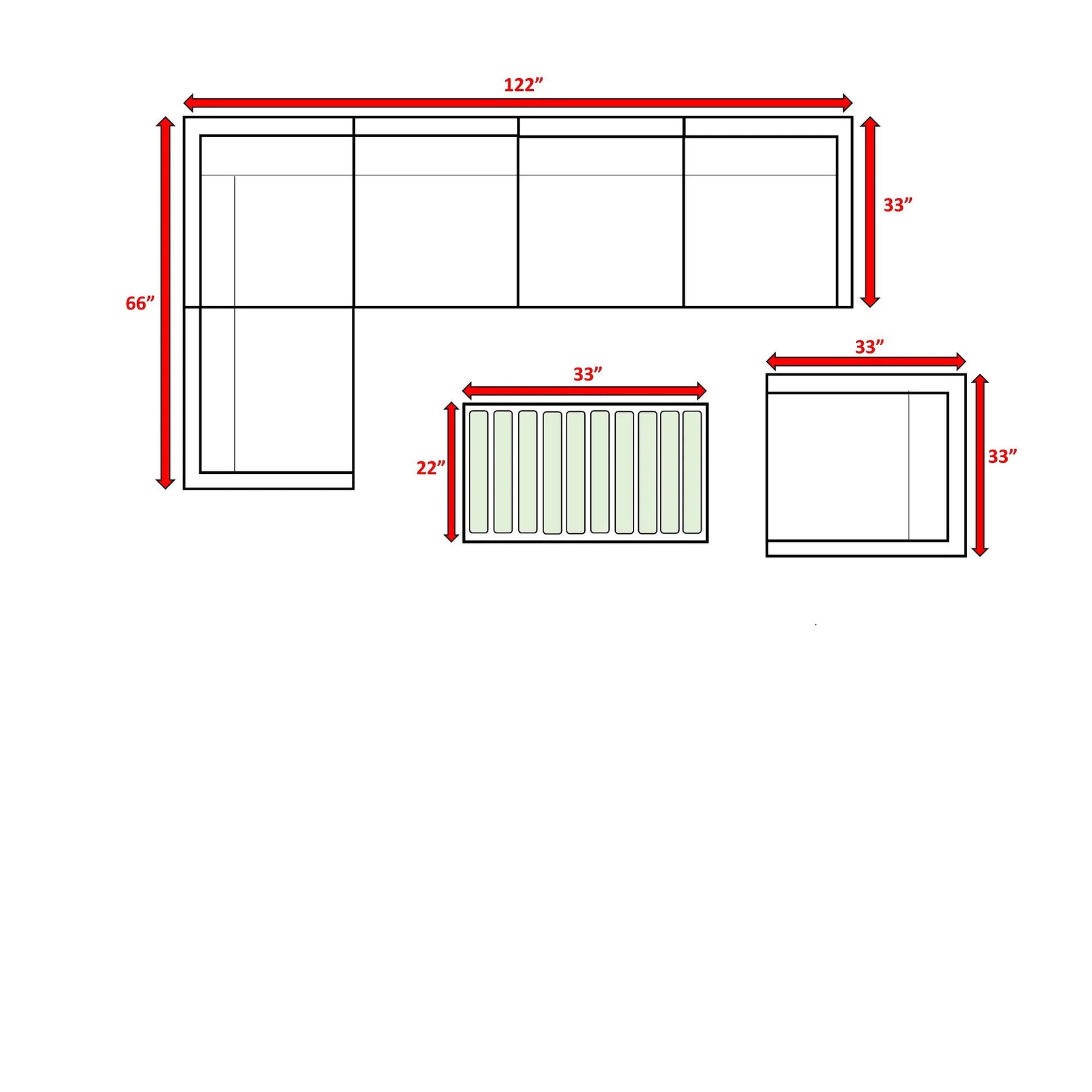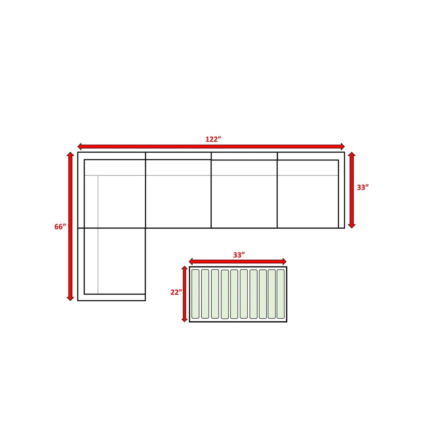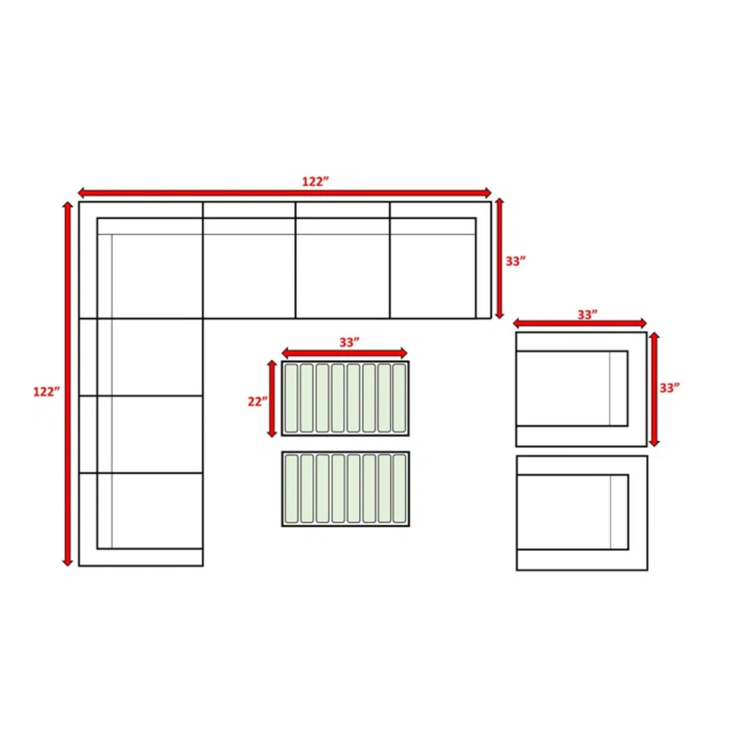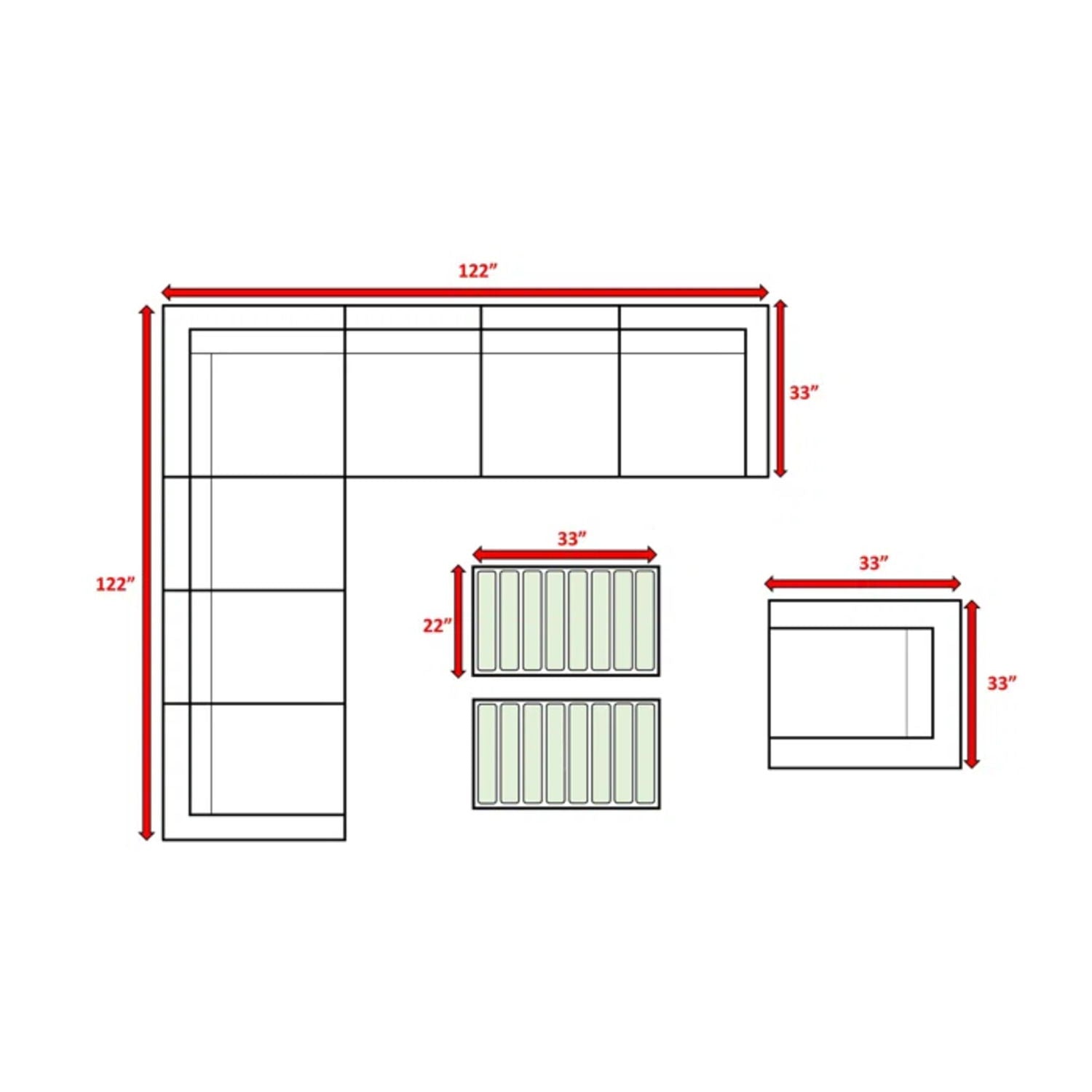 33.0"W x 122.0"D x 26.0"H - 204.0 lb