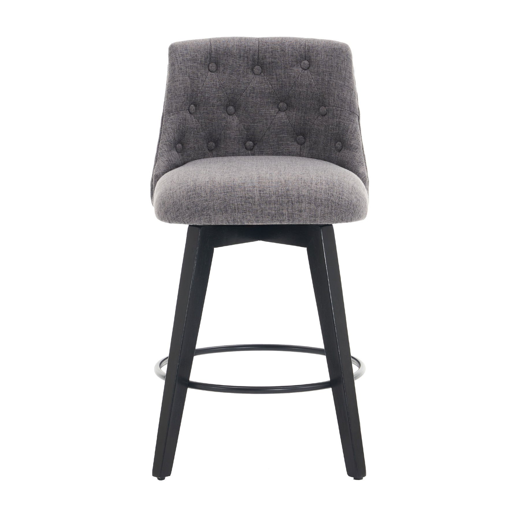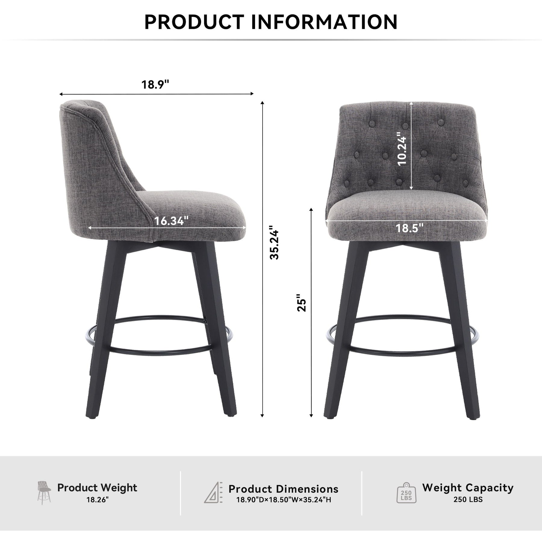 Swivel Bar Stools (Set of 2) Modern Counter Height Stools With Linen Upholstery & Button Tufted Back For Kitchen Island, Breakfast Bar Or Home Pub - Dark Gray