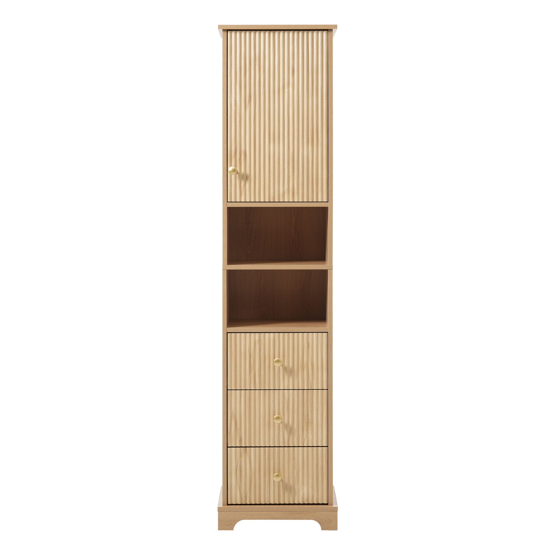 Tall Bathroom Cabinet With 1 Door, 3 Drawers, Open Storage - Wood