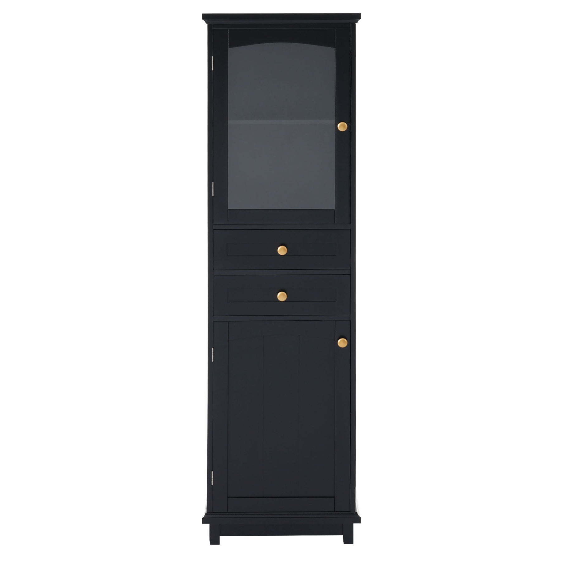 Tall Bathroom Storage Cabinet With Glass Doors, Free-Standing, Two Drawers, And Adjustable Shelves, MDF Board, Painted Perfect For Displaying Your Favorite Items - Black