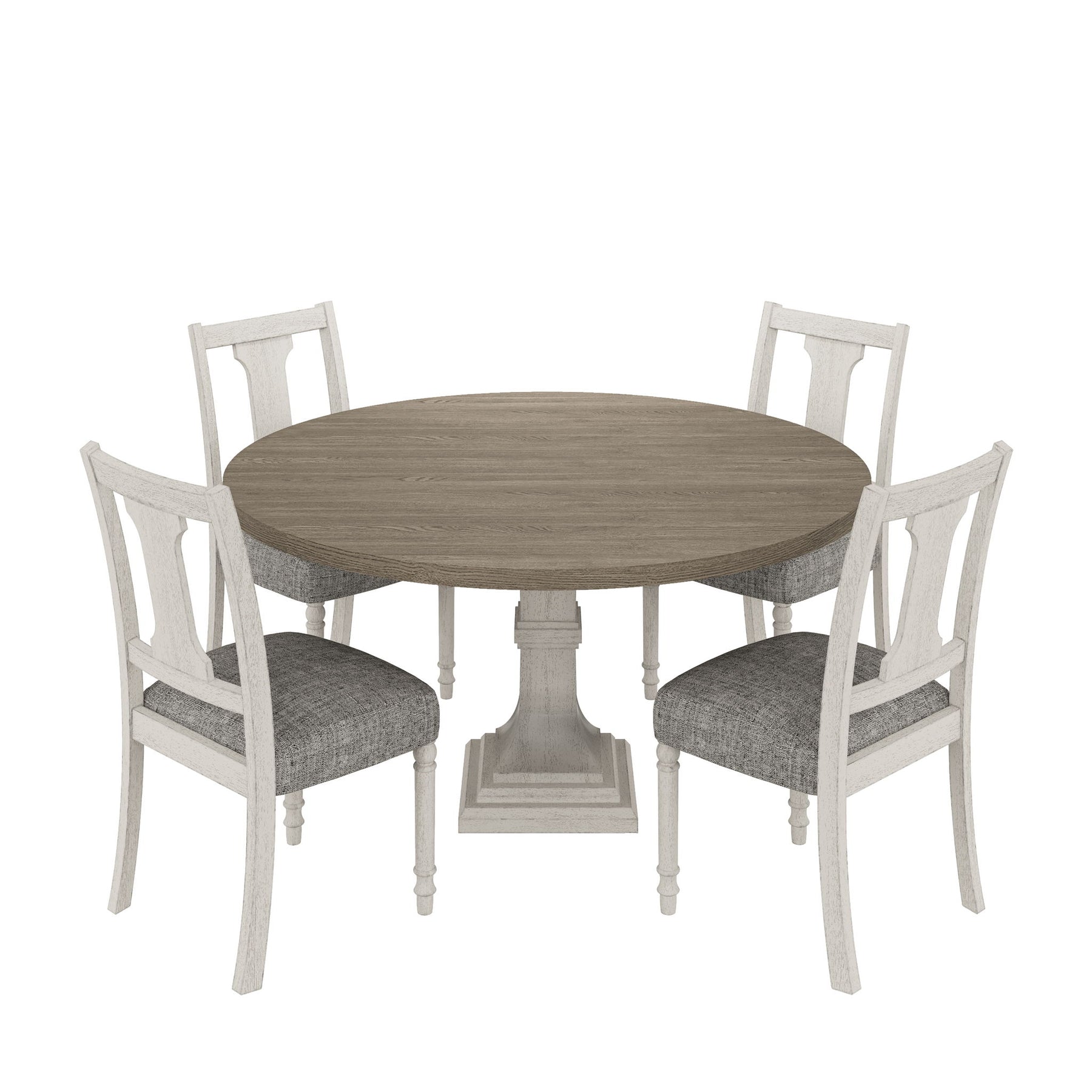 Tannen - Round 5 Piece Dining Table (Set of 5) - White And Gray