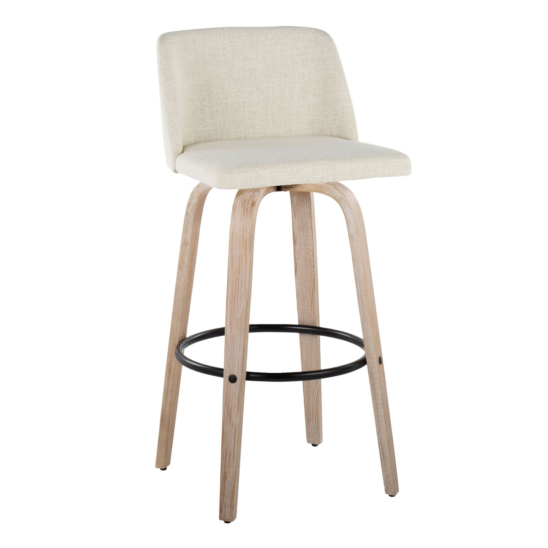 Toriano - Fixed Height Barstool With Round Footrest (Set of 2) - White Washed / Cream