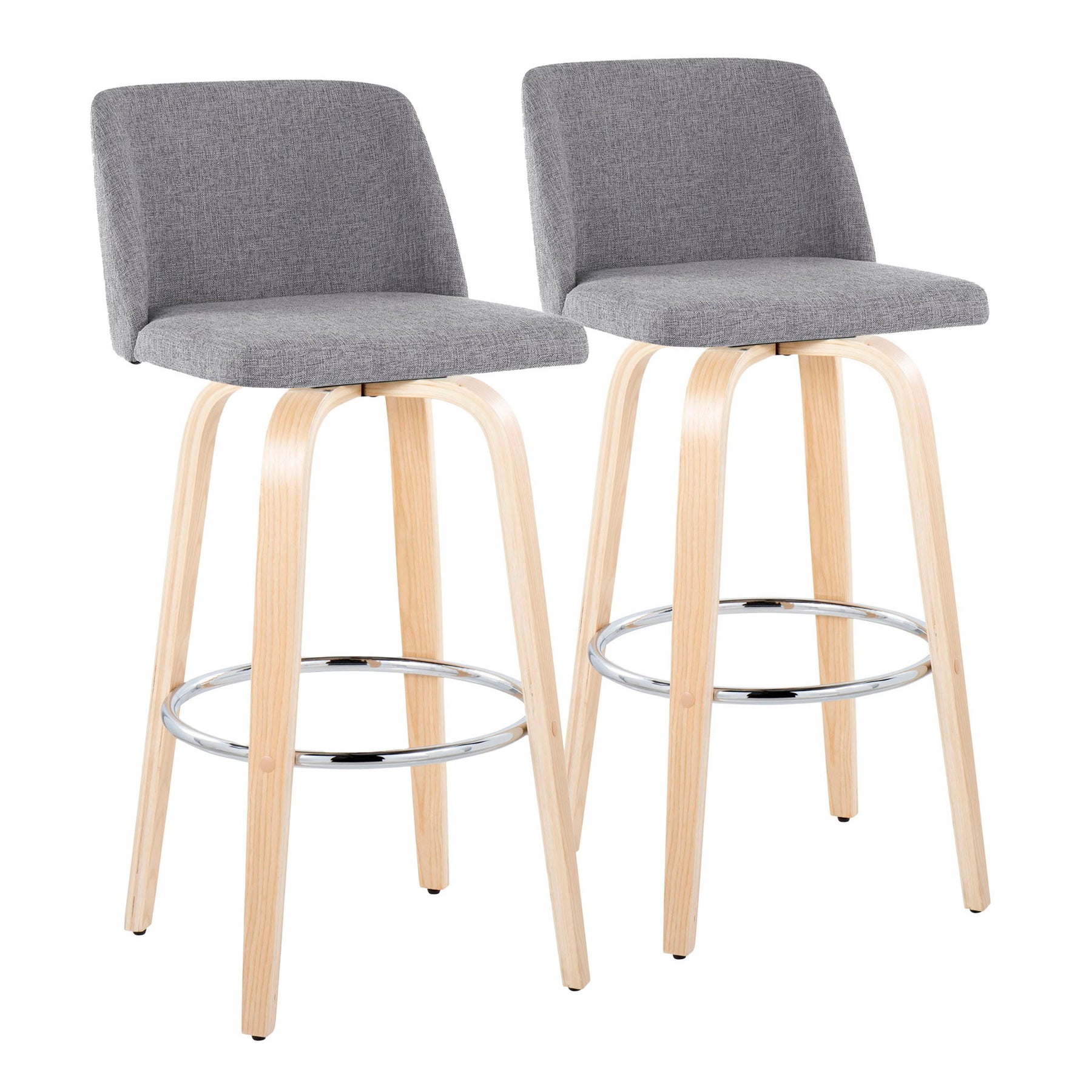 Toriano - Contemporary, Fixed Height Barstool With Swivel With Round Footrest (Set of 2) - Natural / Gray