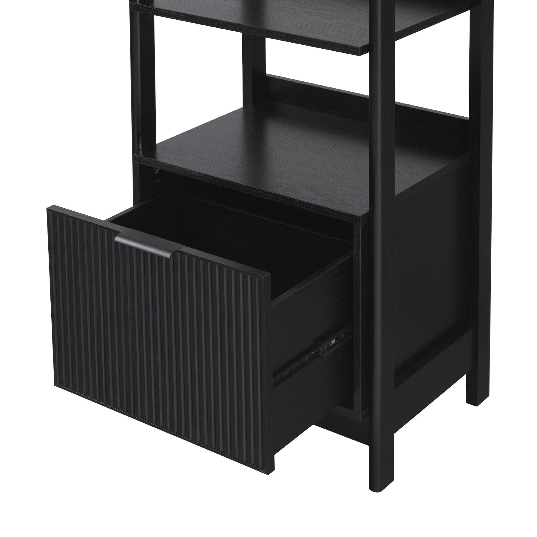 Transitional Narrow Bookshelf With Drawer On Bottom - Black