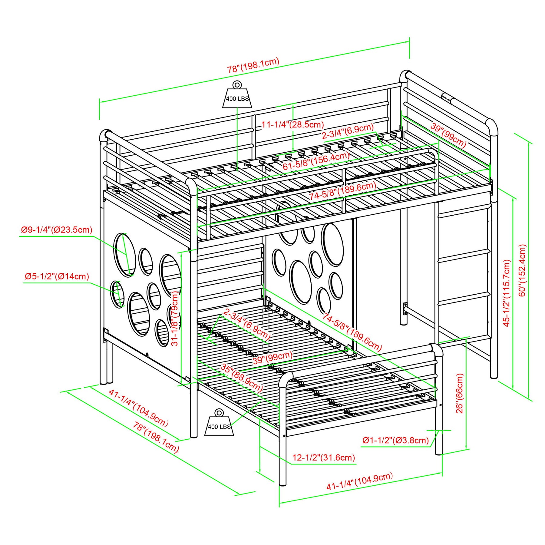 - Youthful Aesthetic: With fun circle-cutout panels, our bunk bed adds a playful and youthful touch to any bedroom, creating a cheerful atmosphere that kids will love.