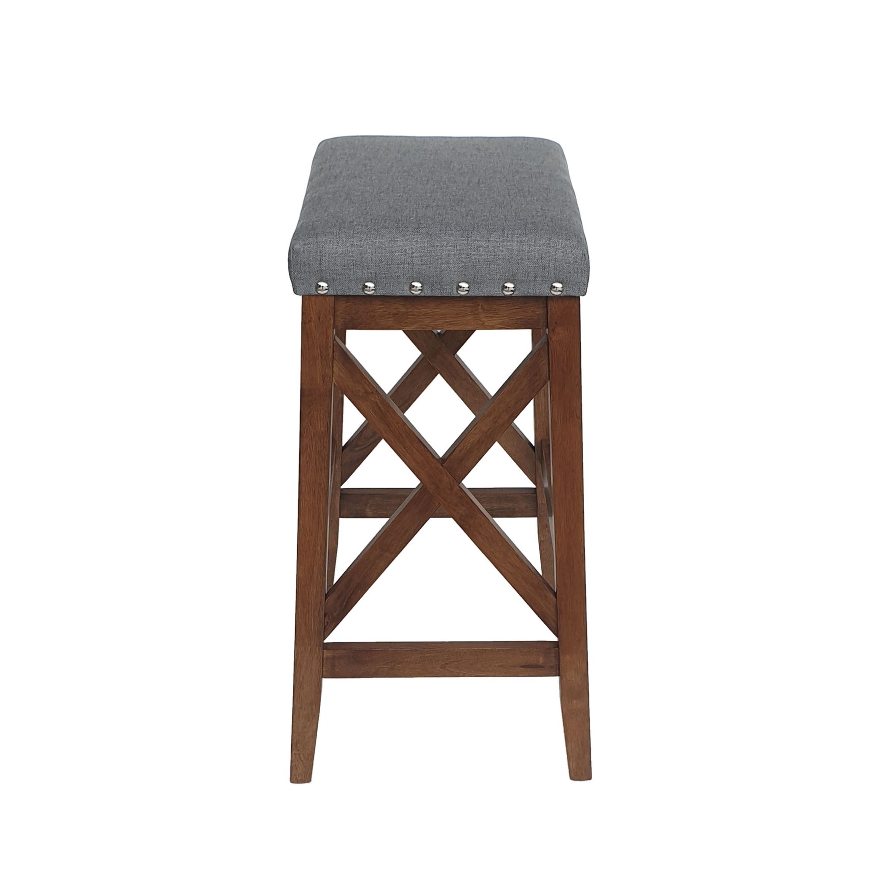 Upholstered Bar Stool With Nailhead Trim And X Frame Design (Set of 2) - Charcoal