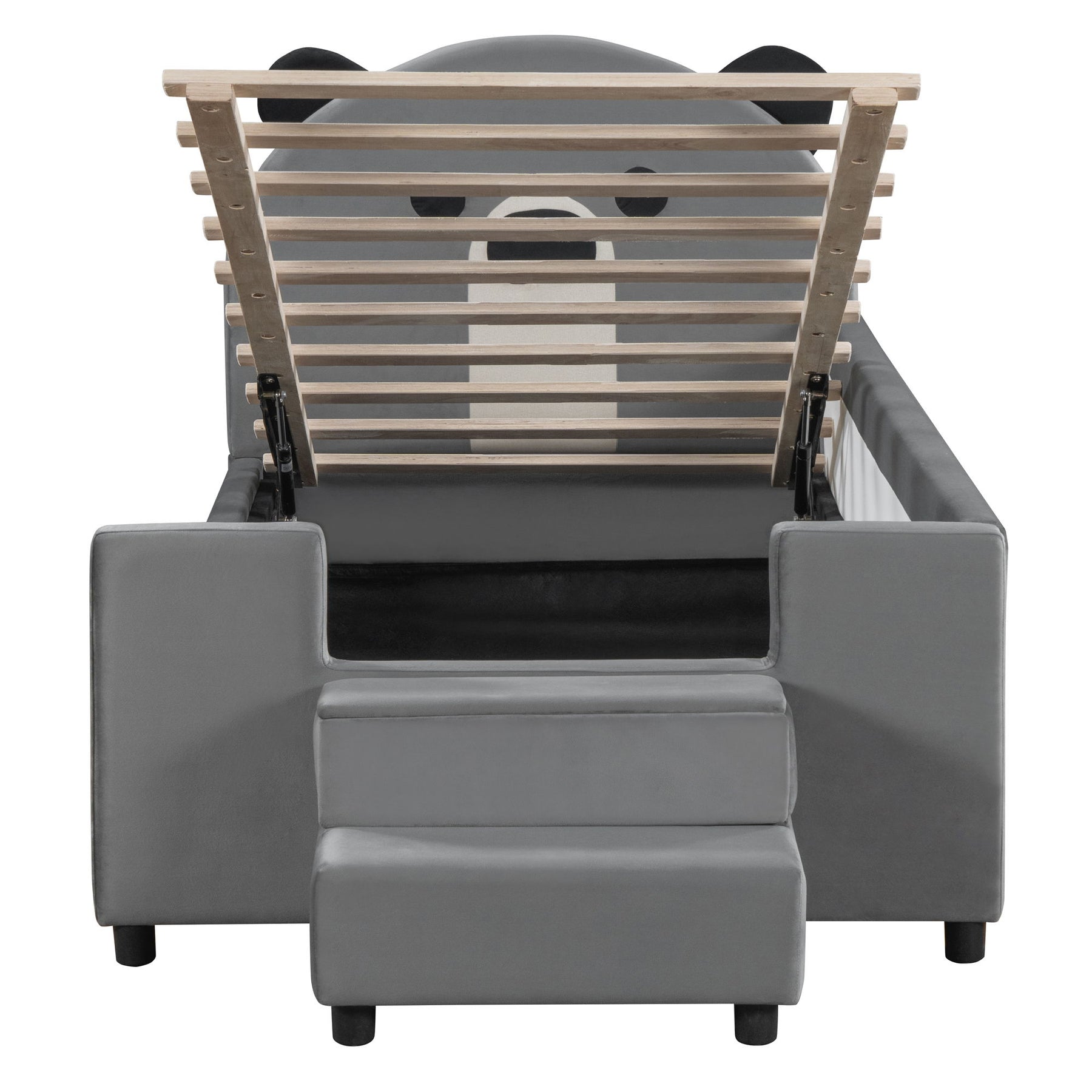 Twin Size Upholstered Daybed With Bear Shaped Headboard, Hydraulic System And Breathable Mesh Fence - Gray