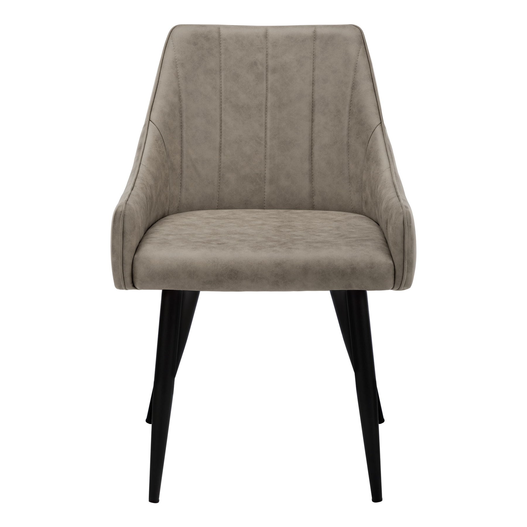 - Stylish Upholstery: This set of 2 dining chairs is upholstered in a distressed leather-look fabric, featuring elegant vertical tufting that adds a touch of modern sophistication to any dining room.