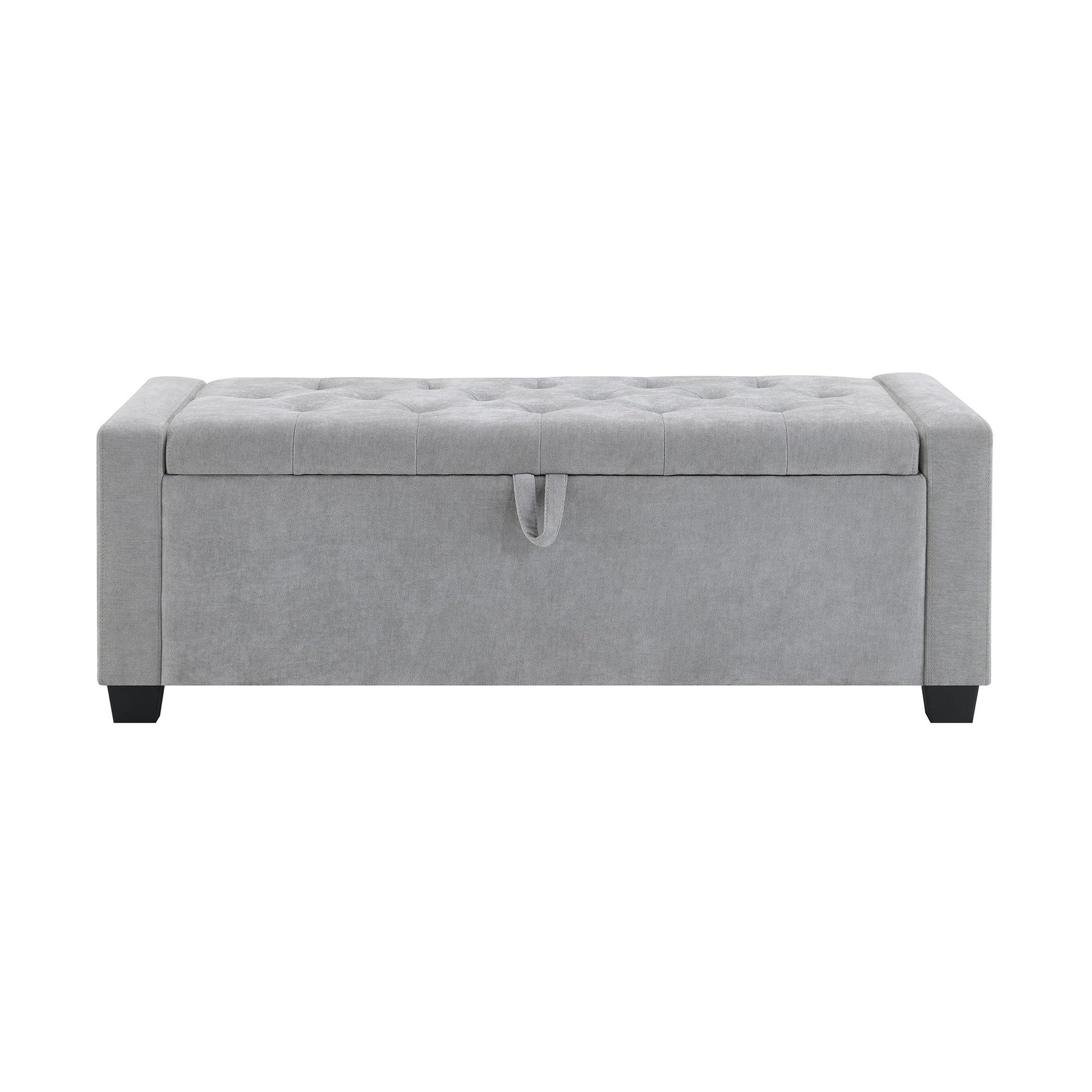 Upholstered Storage Ottoman Bench With Button Tufting And Safety Hinge For Living Room - Light Gray