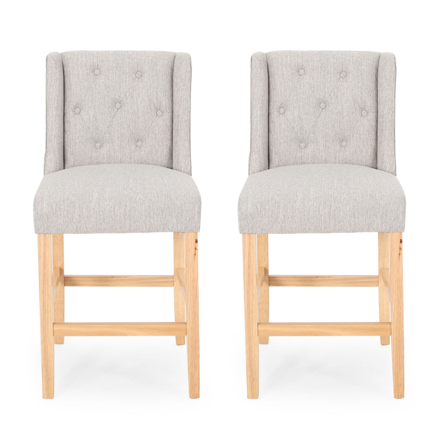 Vienna - Contemporary Fabric Tufted Wingback Counter Stools, (Set of 2) - Light Gray / Natural