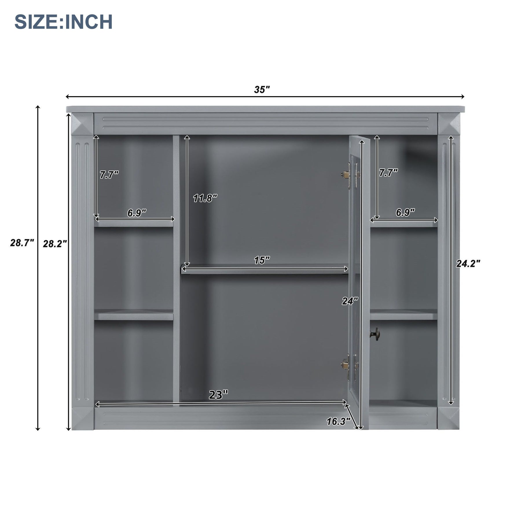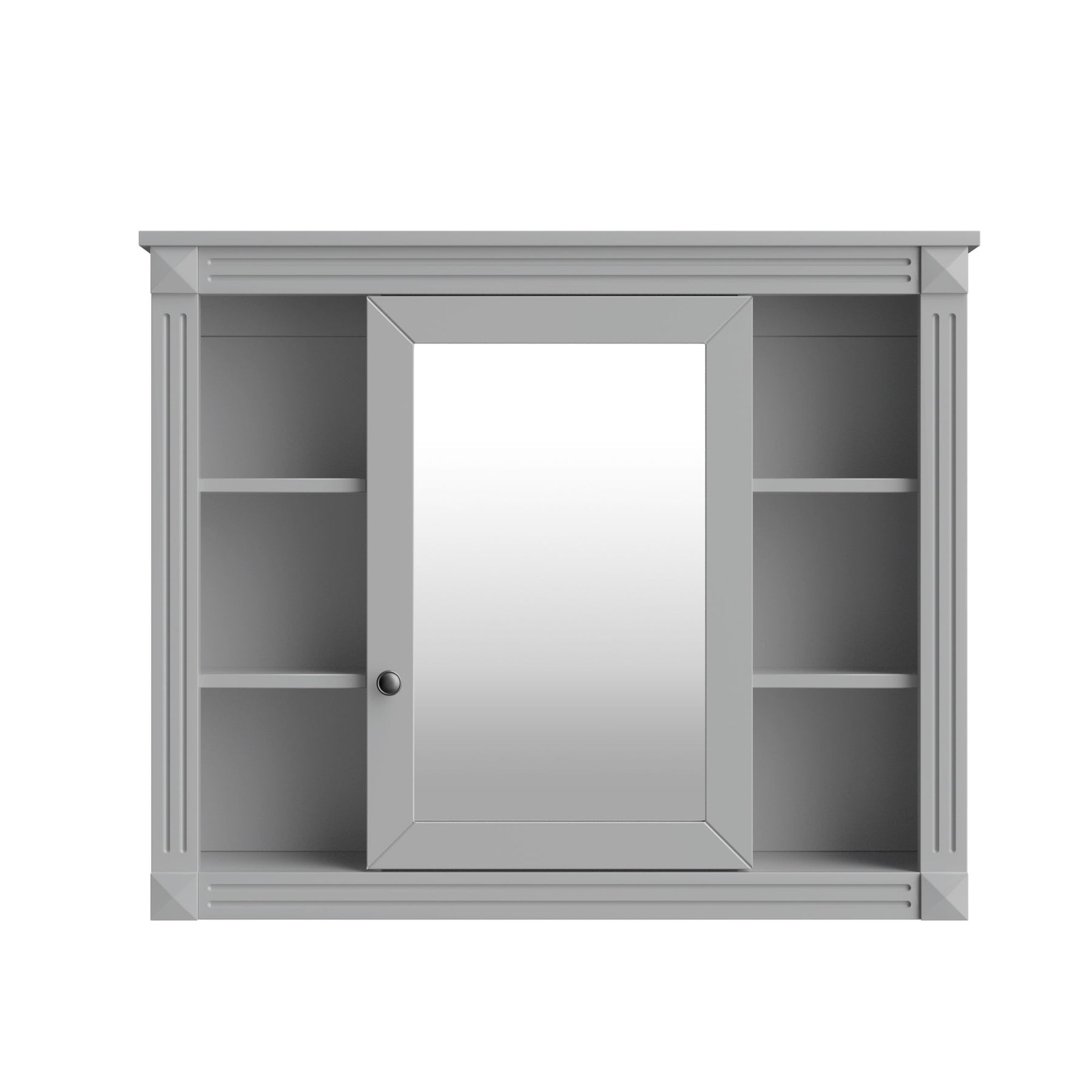 Wall Mounted Bathroom Storage Cabinet With Mirror, Medicine Cabinet With 6 Open Shelves And Adjustable Interior - Gray