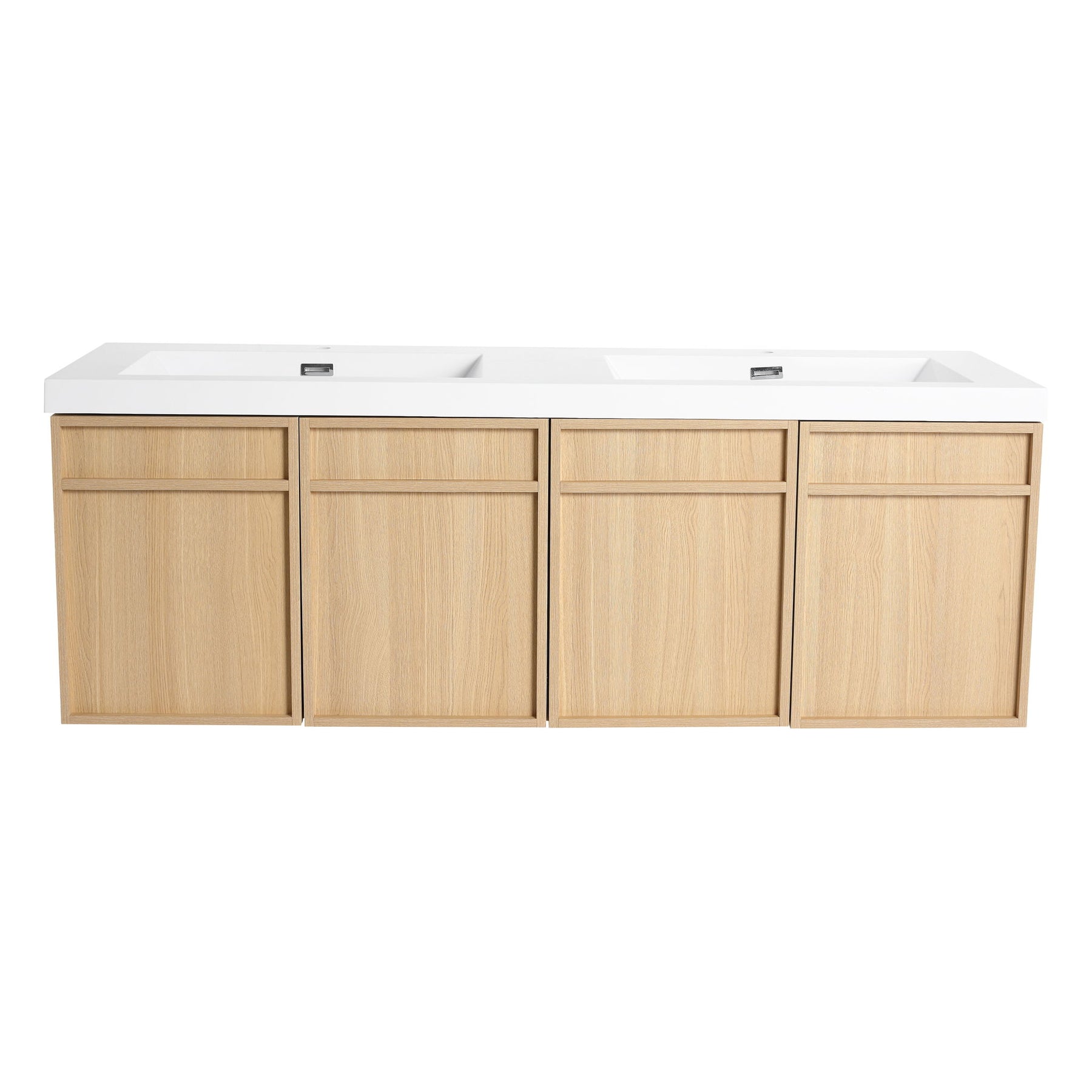 Original 60" Wall Mounted Bathroom Vanity With Double Resin Sink And Soft Closing Doors Plywood - Oak
