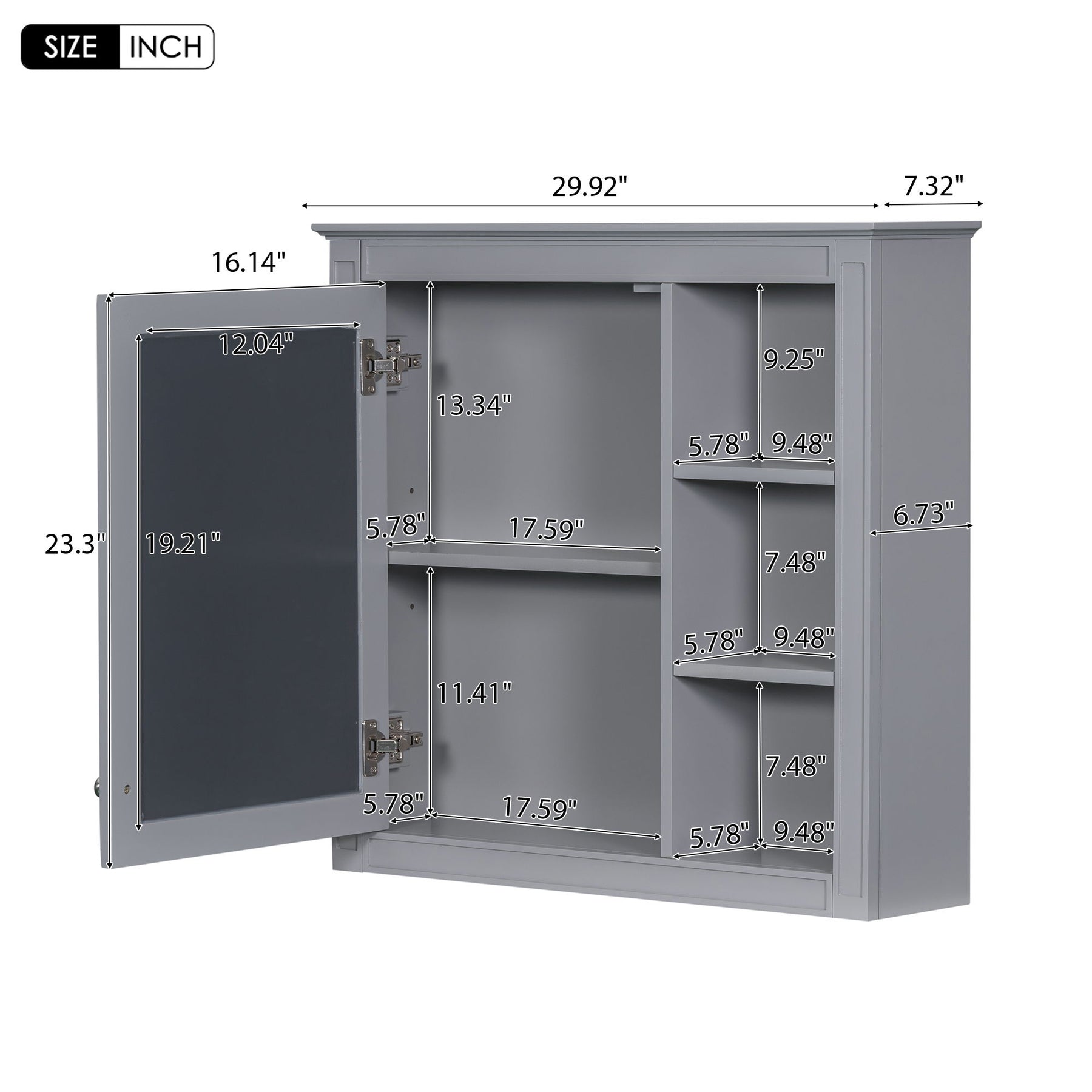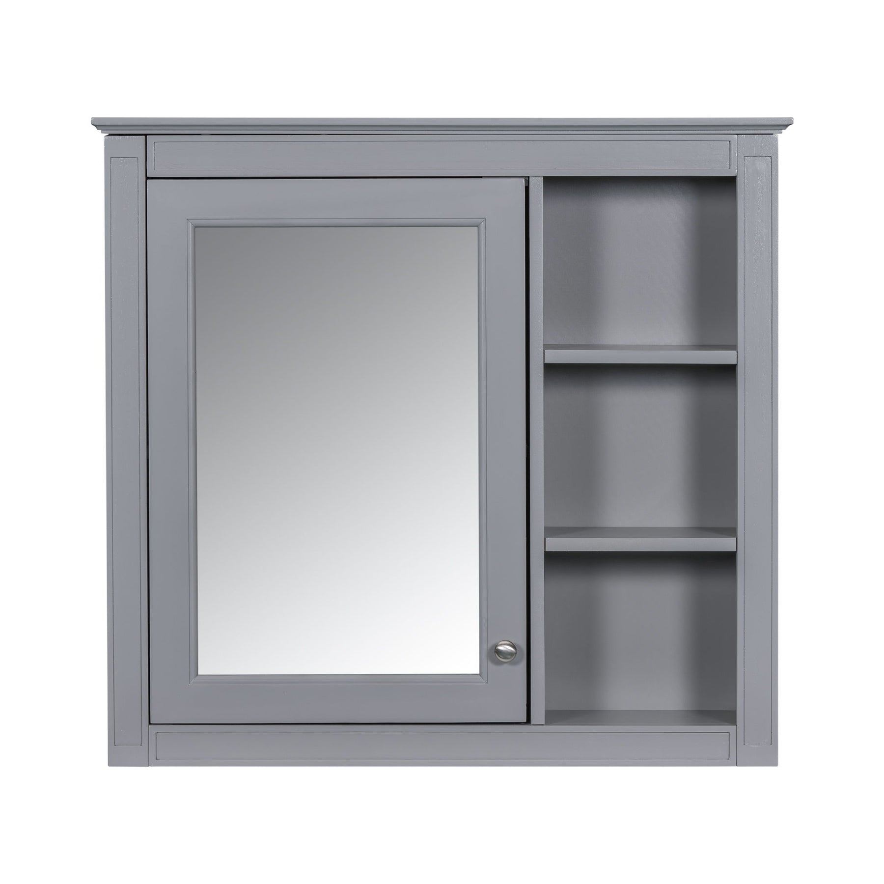 Wall-Mounted Medicine Cabinet With Mirror And 3 Open Shelves, Storage Cabinet - Gray