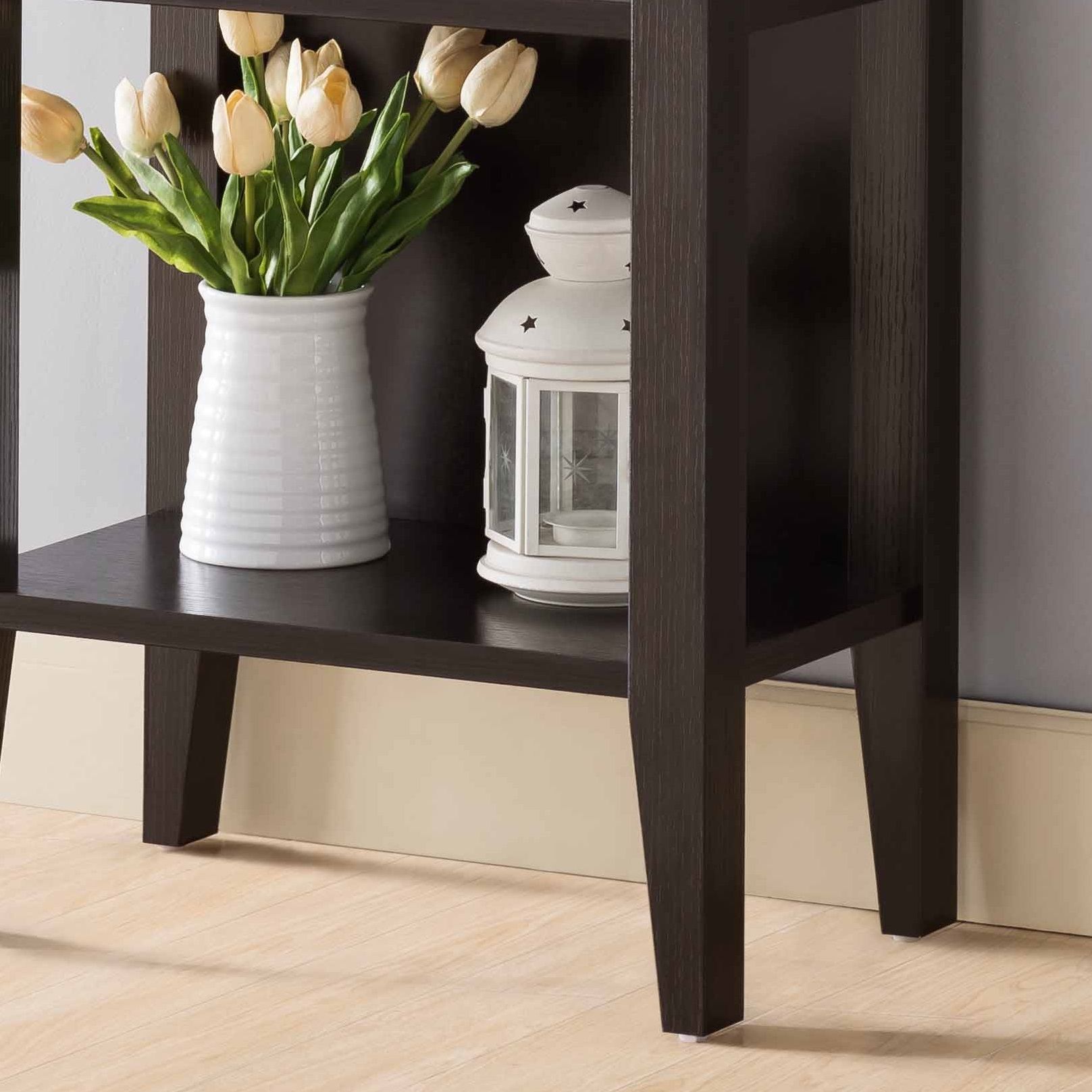 • Material and Finish: Made from particle board and MDF, the rack features an espresso finish, blending seamlessly with various decor styles.