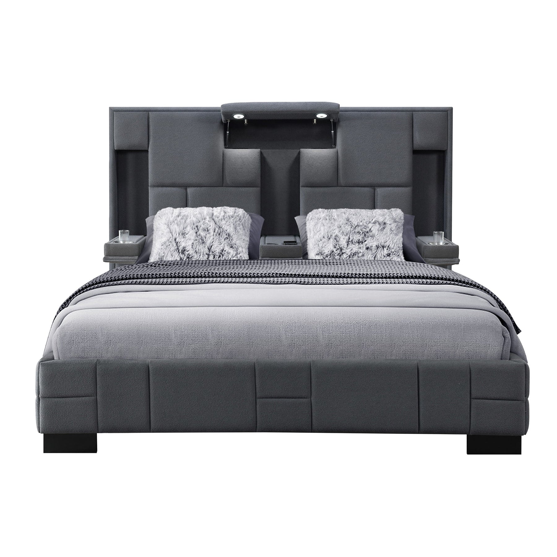Yaris - Queen Bed With Wireless Charging And LED Lights - Dark Gray
