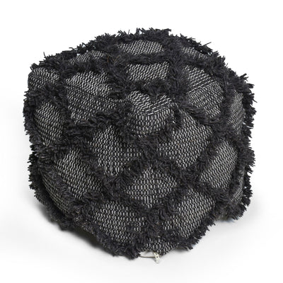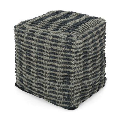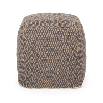 Lani - Handcrafted Fabric Pouf, Durable Cotton Square - Natural / Black