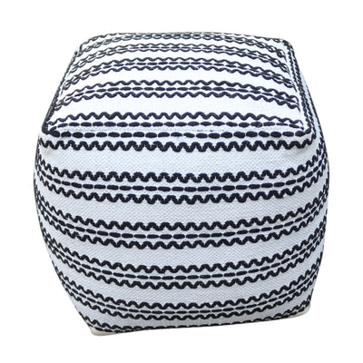 Dalm - Fabric Square Pouf Ottoman With Polystyrene Beads Filling - Dark Blue / White