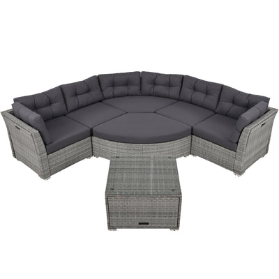 Cast Aluminum Round Counter Table With Lattice Design And Umbrella Hole - Dark Lava Bronze