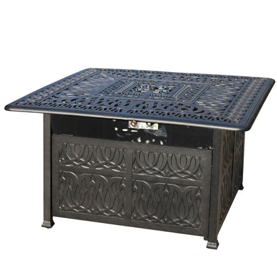 Elegant Cast Aluminum Square Fire Table With Fire Glass And Cover - Antique Bronze