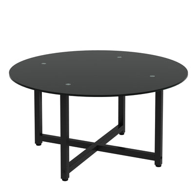 JWS Round Glass Coffee Table, Clear Coffee Table, Modern Side Center Tables For Living Room